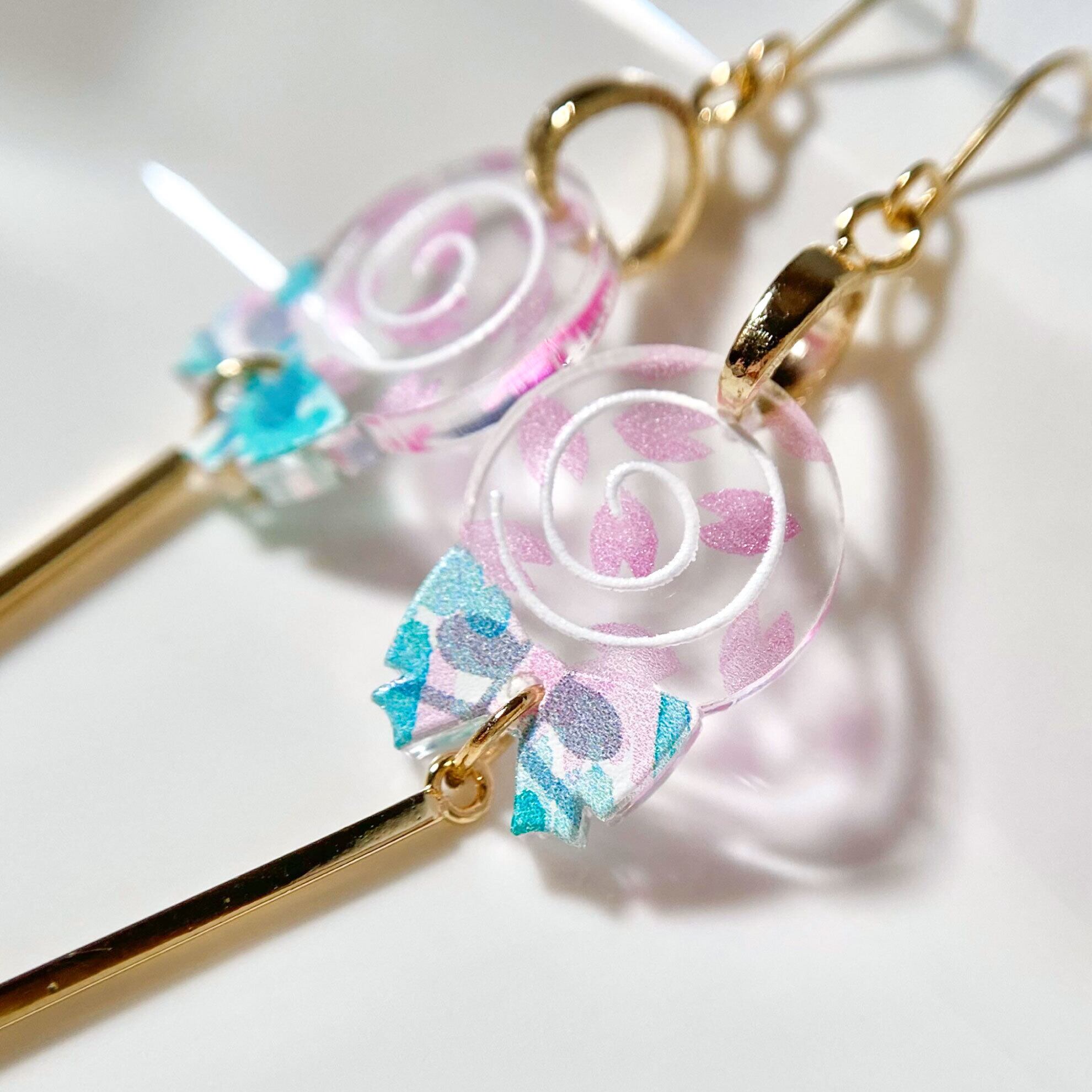 キャンディには透ける装飾を施しており、本作品《 Lollipop -sakura- 》は桜の花びらが舞い散るデザインが入っています。