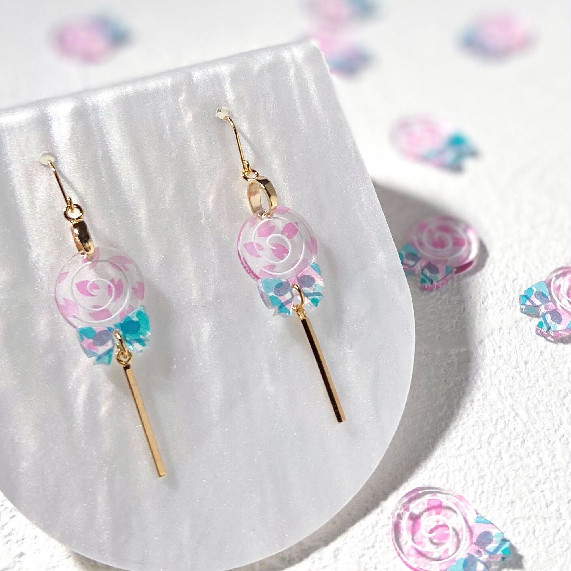 ペロペロキャンディをモチーフにした耳飾り《 Lollipop(ロリポップ)》。