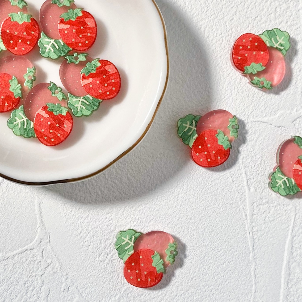 水彩カラーの苺とクリアカラーの苺、質感と色味の異なる二粒が可愛いデザインです。