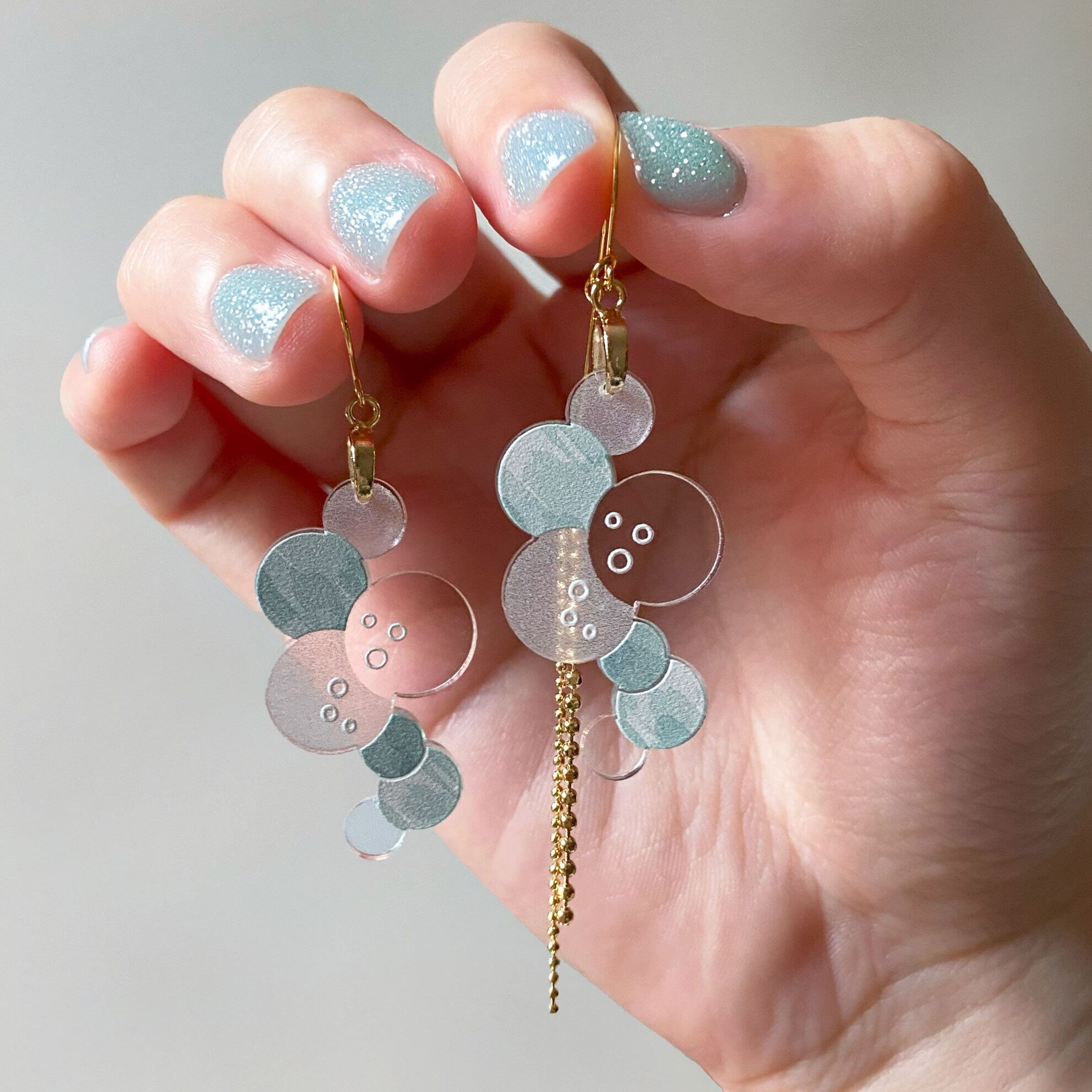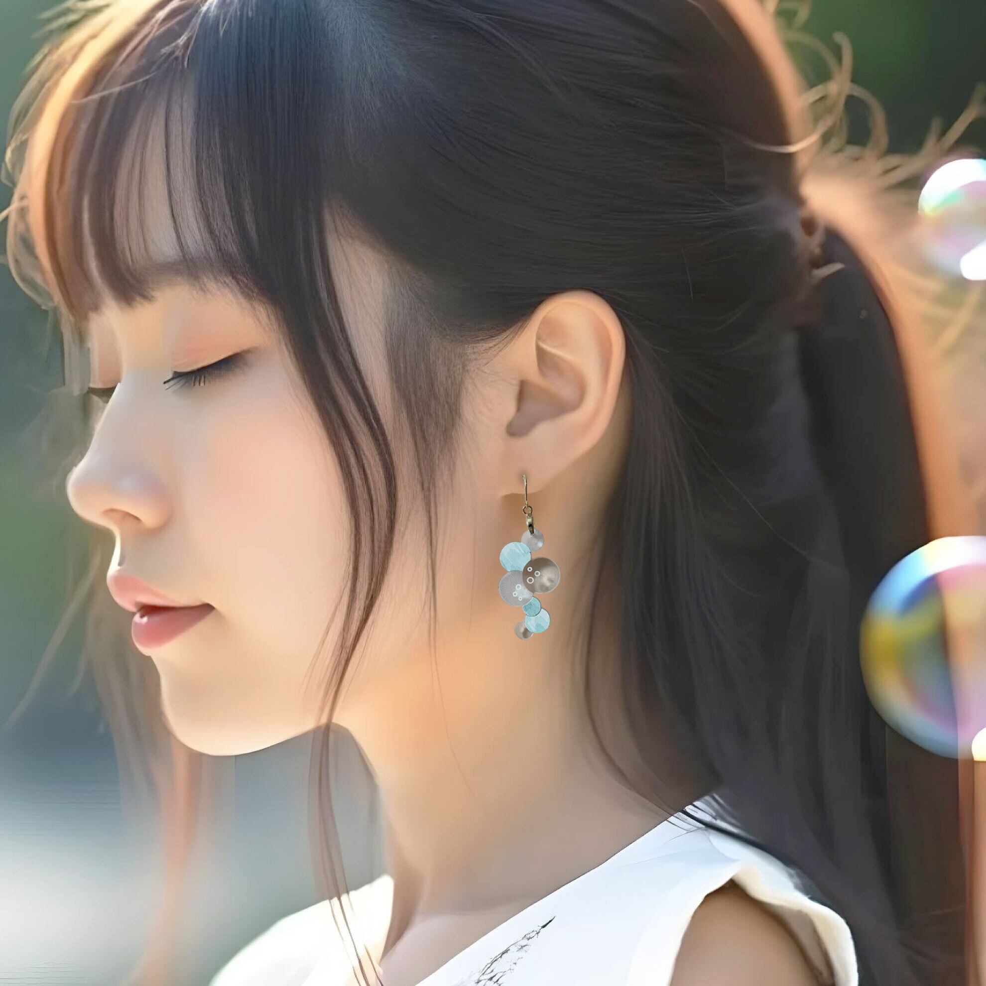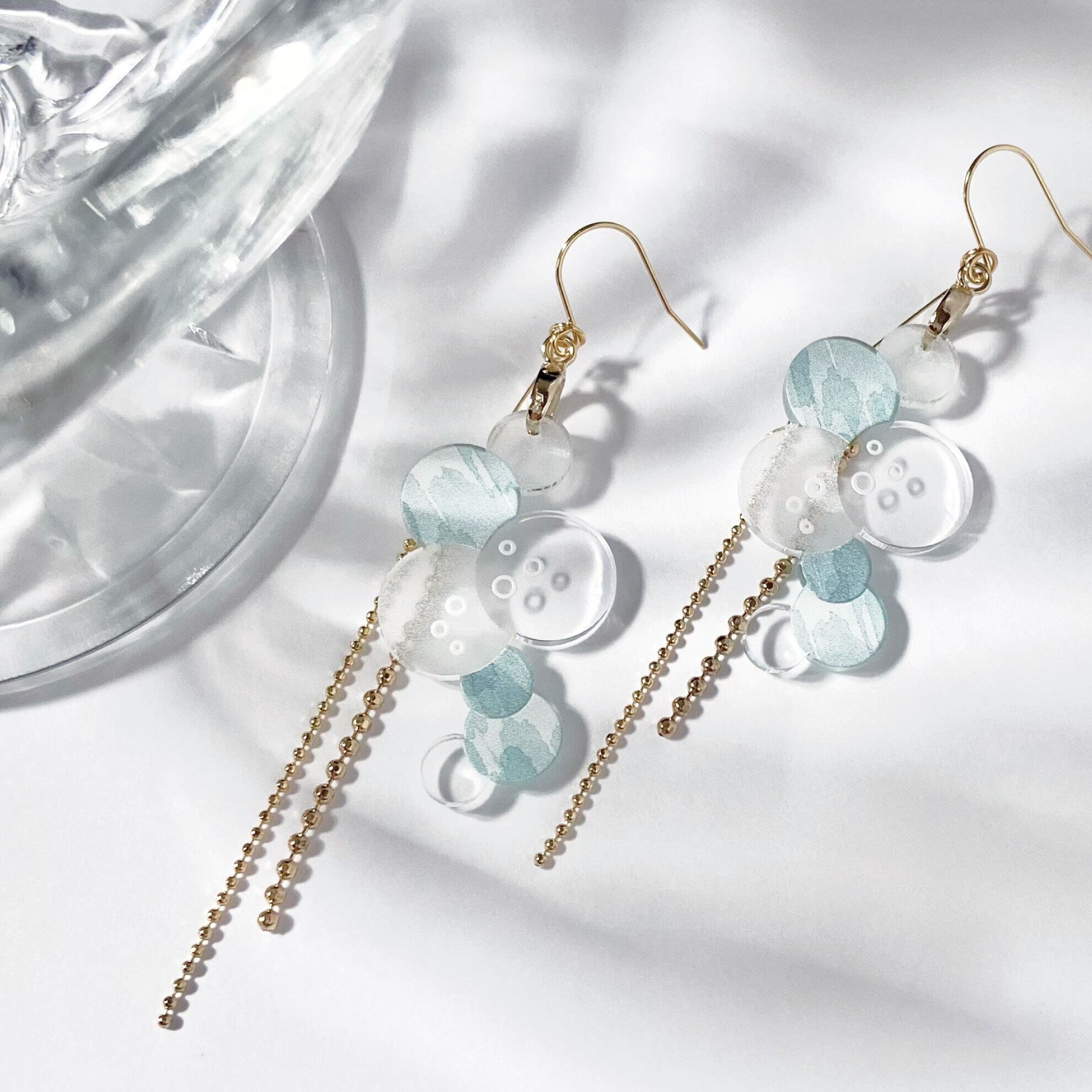 ぽこぽこと丸くたちのぼる泡がユニークな耳飾り、《 Bubble(バブル)》。