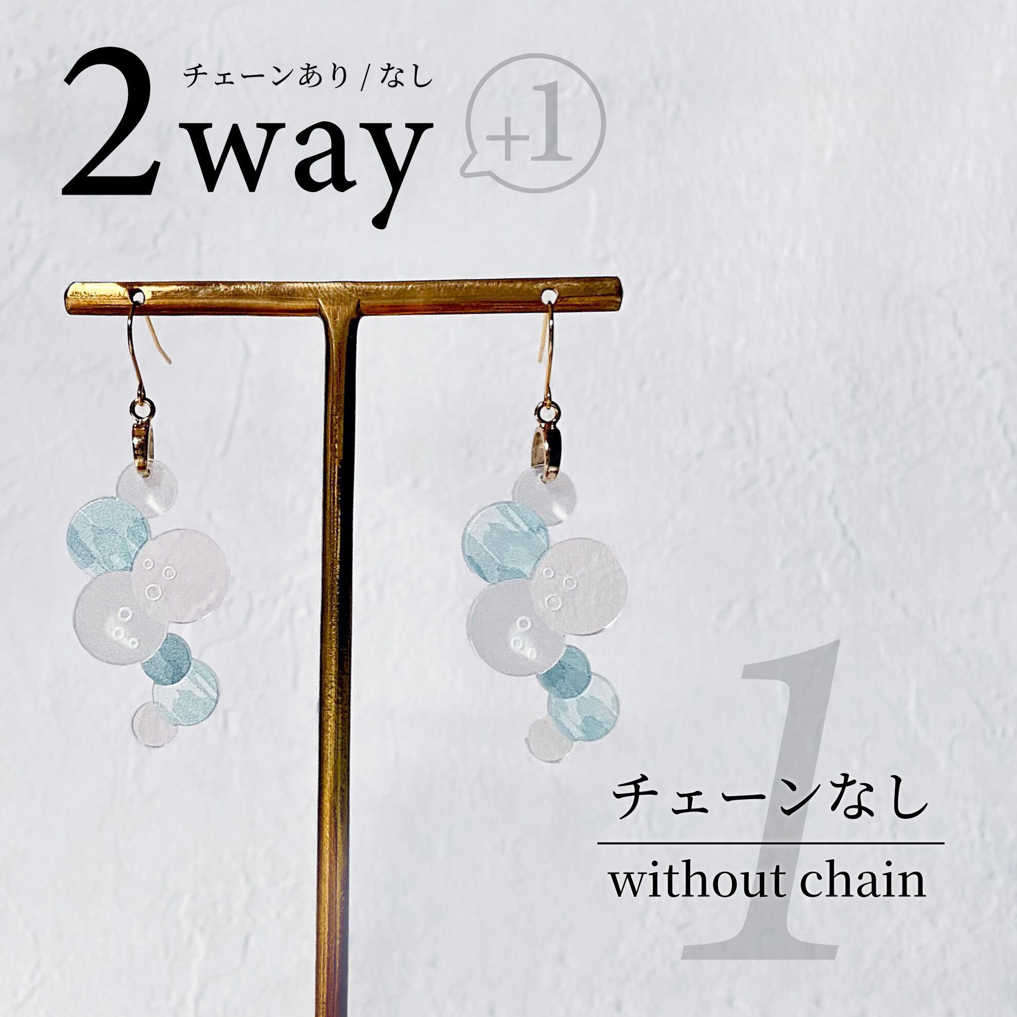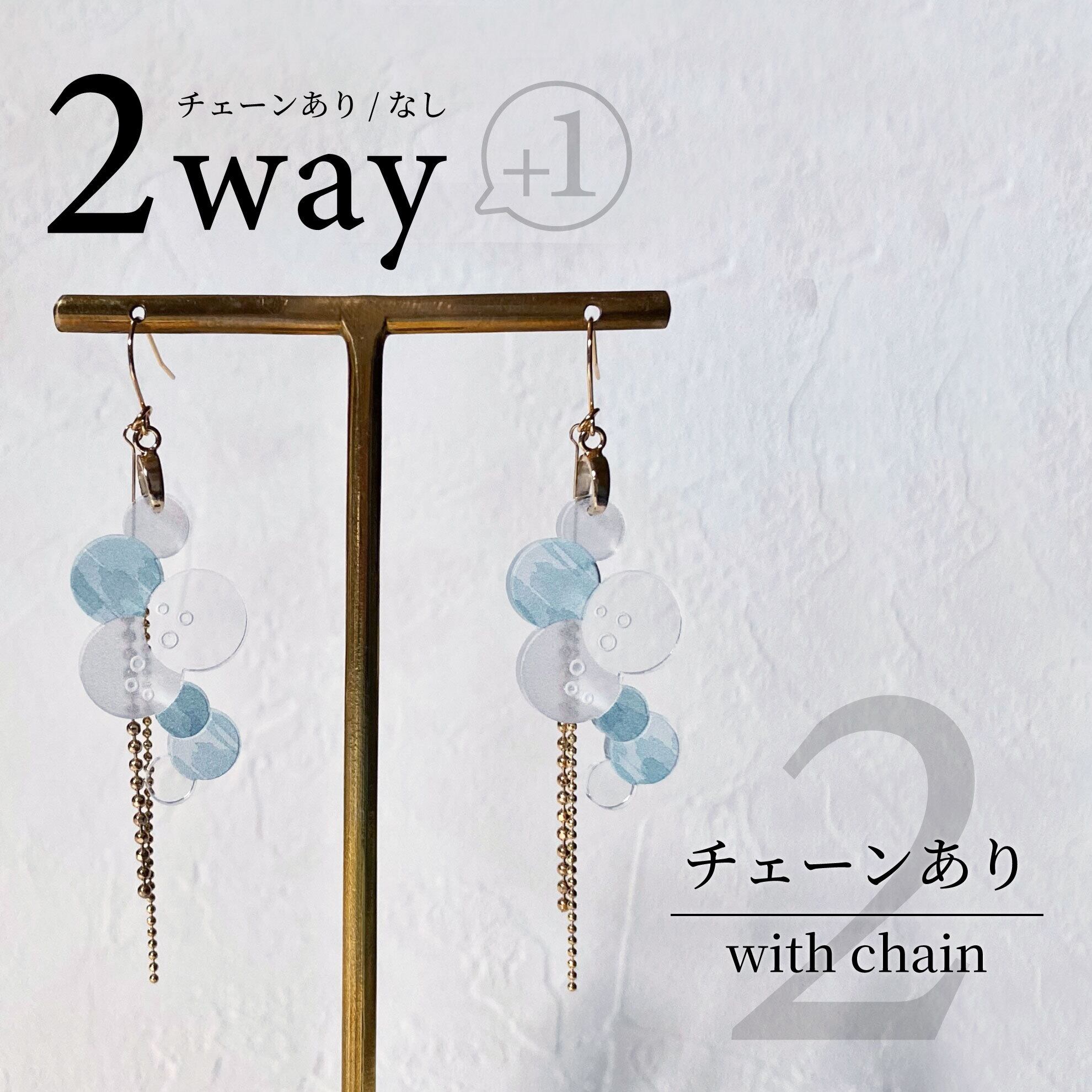 小さな泡をイメージした、揺れるボールチェーンは取り外し可能。 気分に合わせてチェーンあり/なしで使い分けができます。