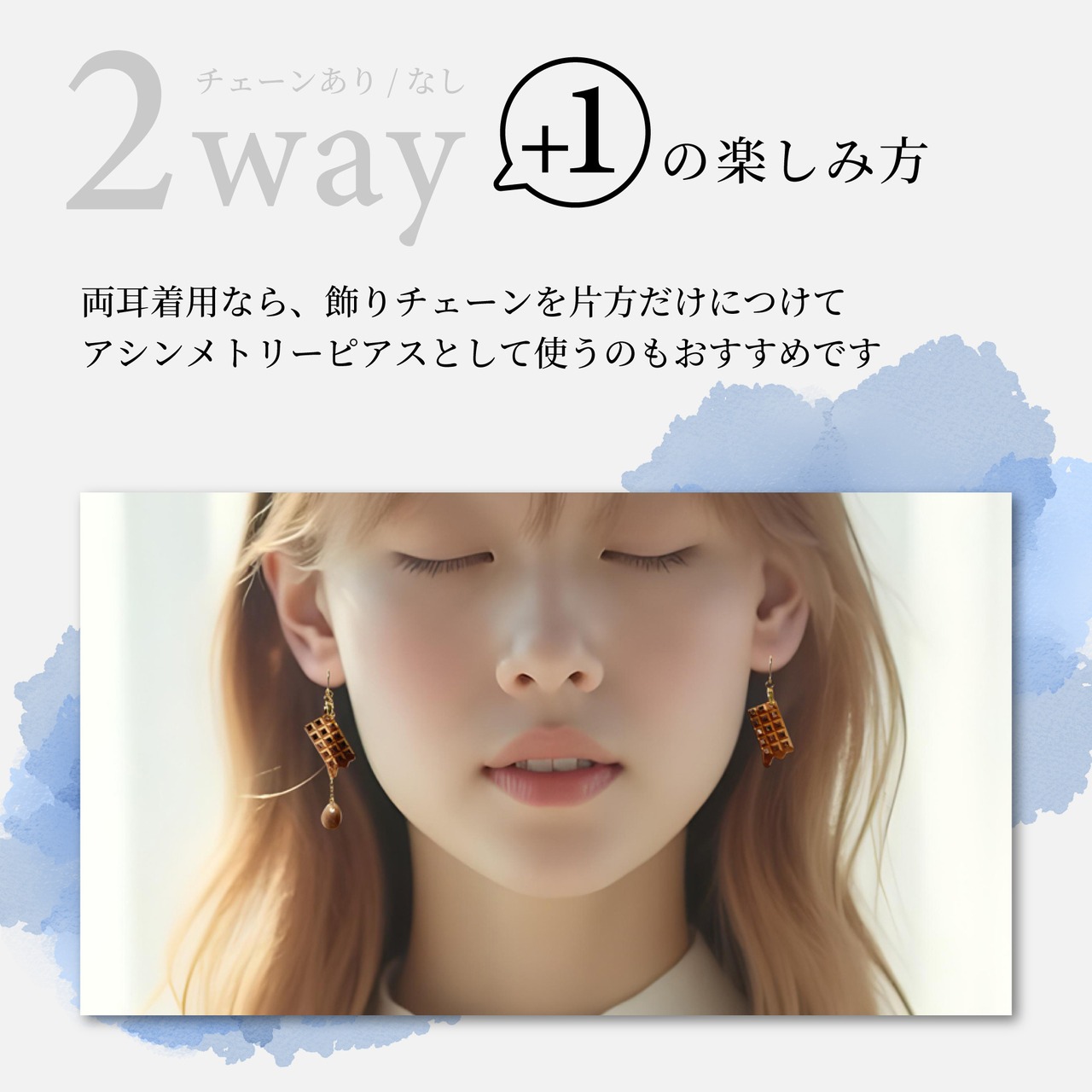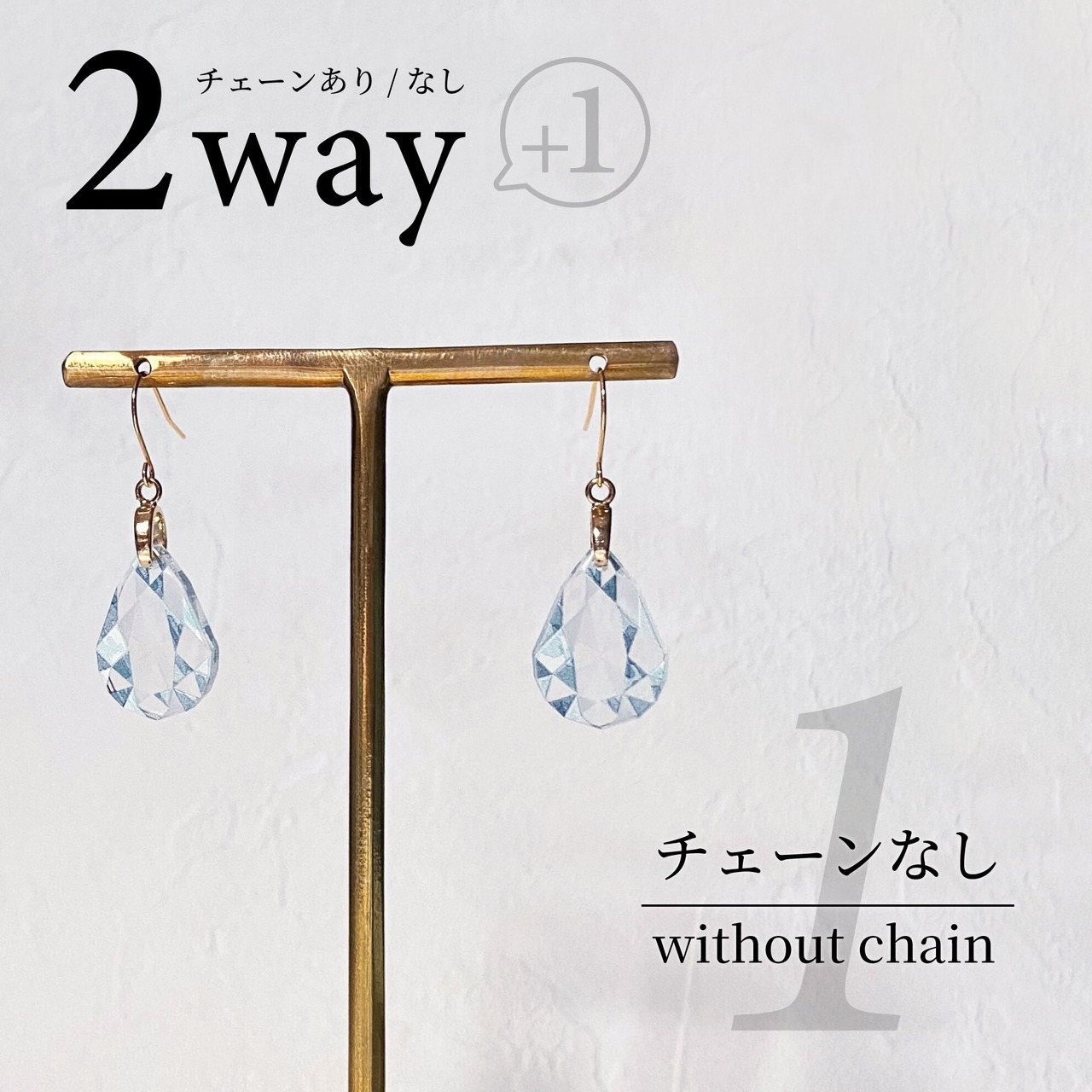 小さなしずく型のストーンと揺れるツインチェーンは取り外しができて、気分に合わせてショートタイプとロングタイプで使い分けができます。