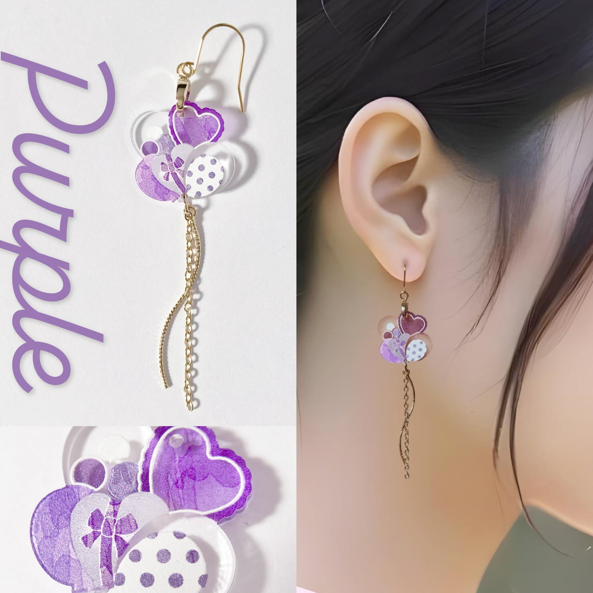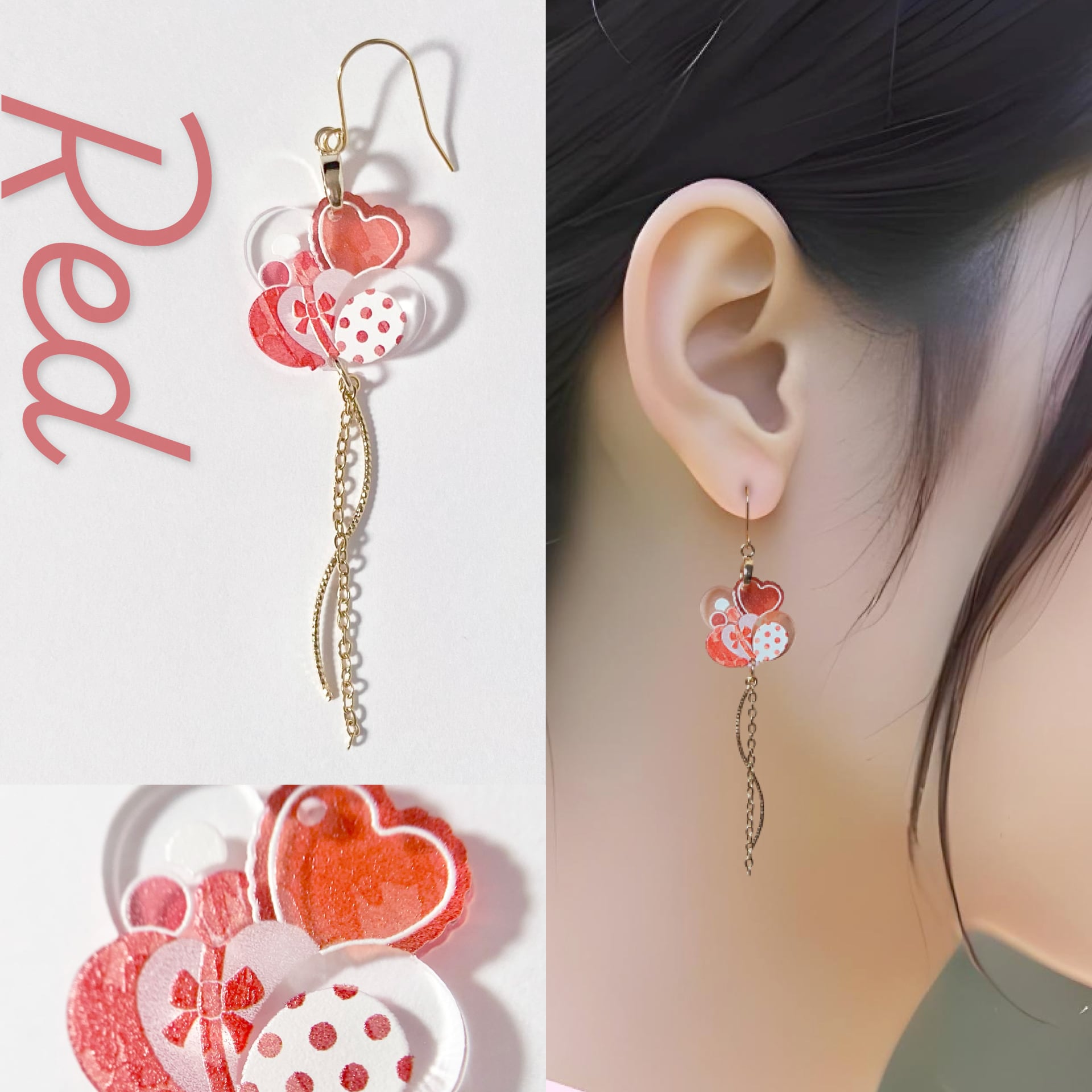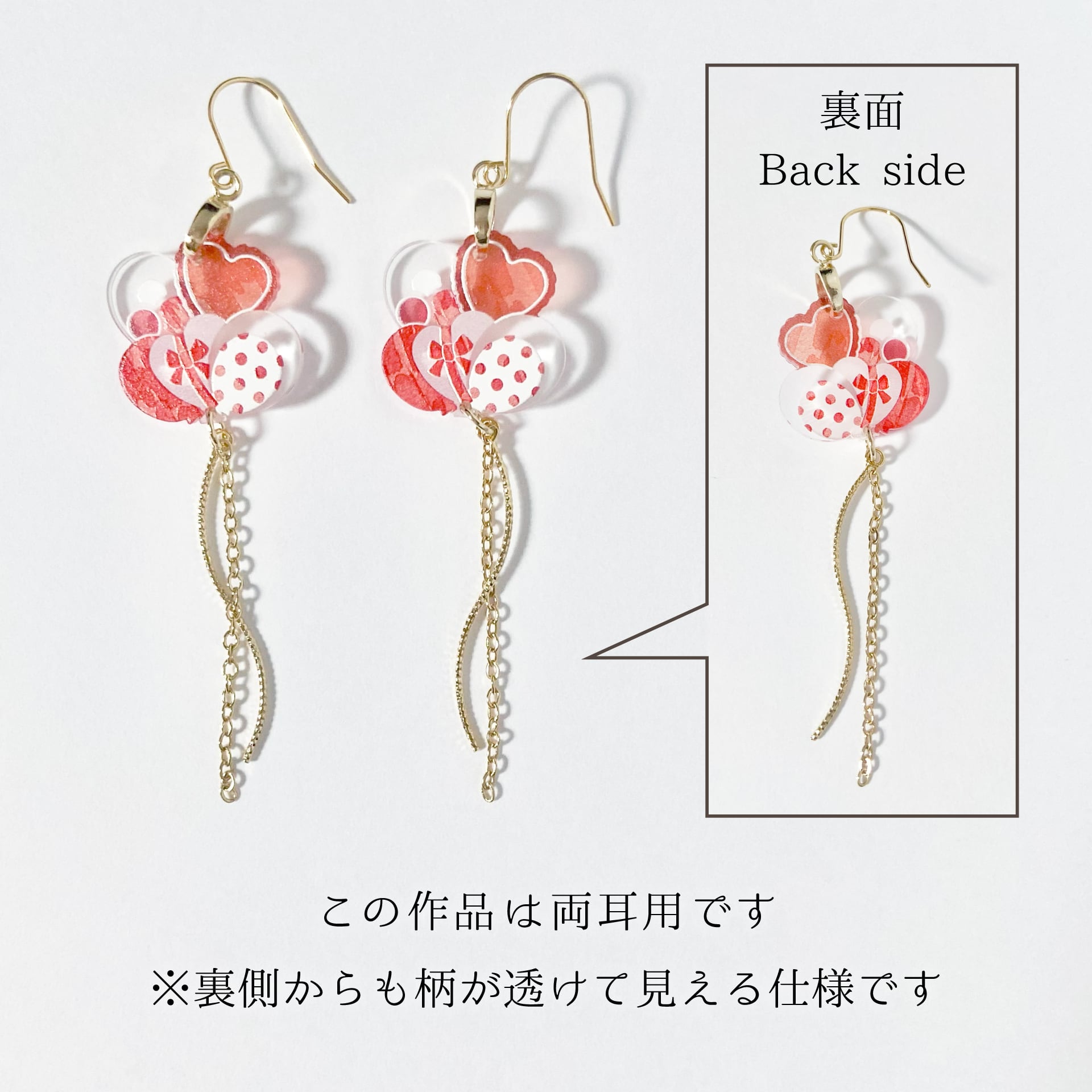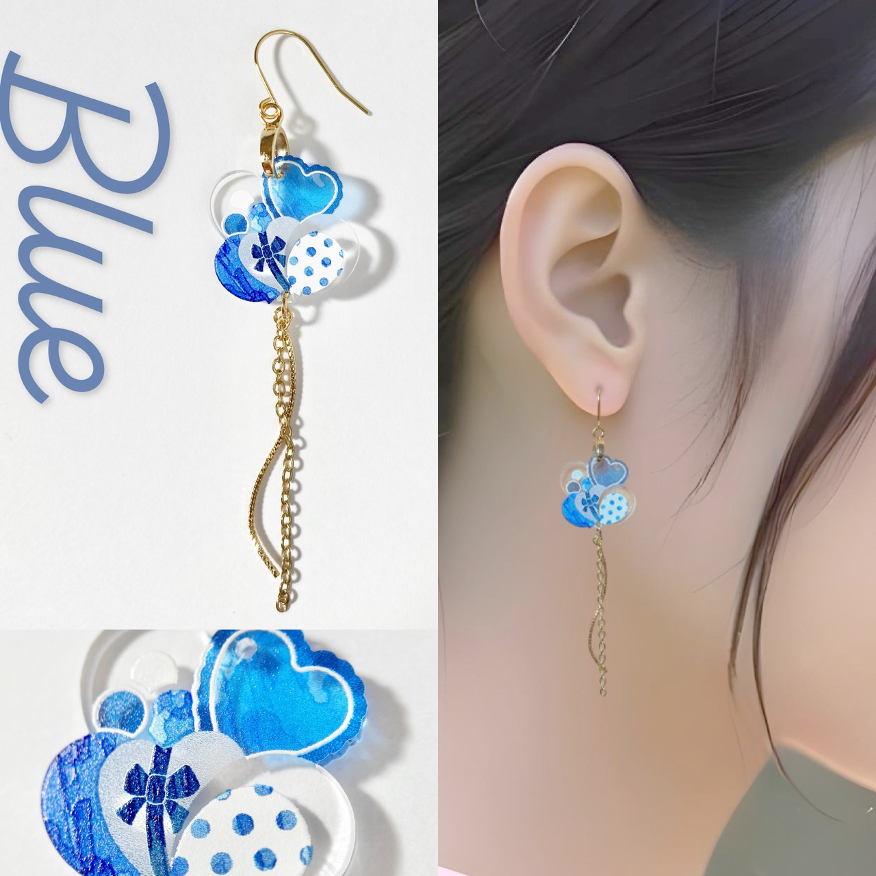 特別な日にも、いつもの日常をパッと明るくしたい時にも、付けると心が風船のようにふわりと浮かぶ、楽しい耳飾りです。
