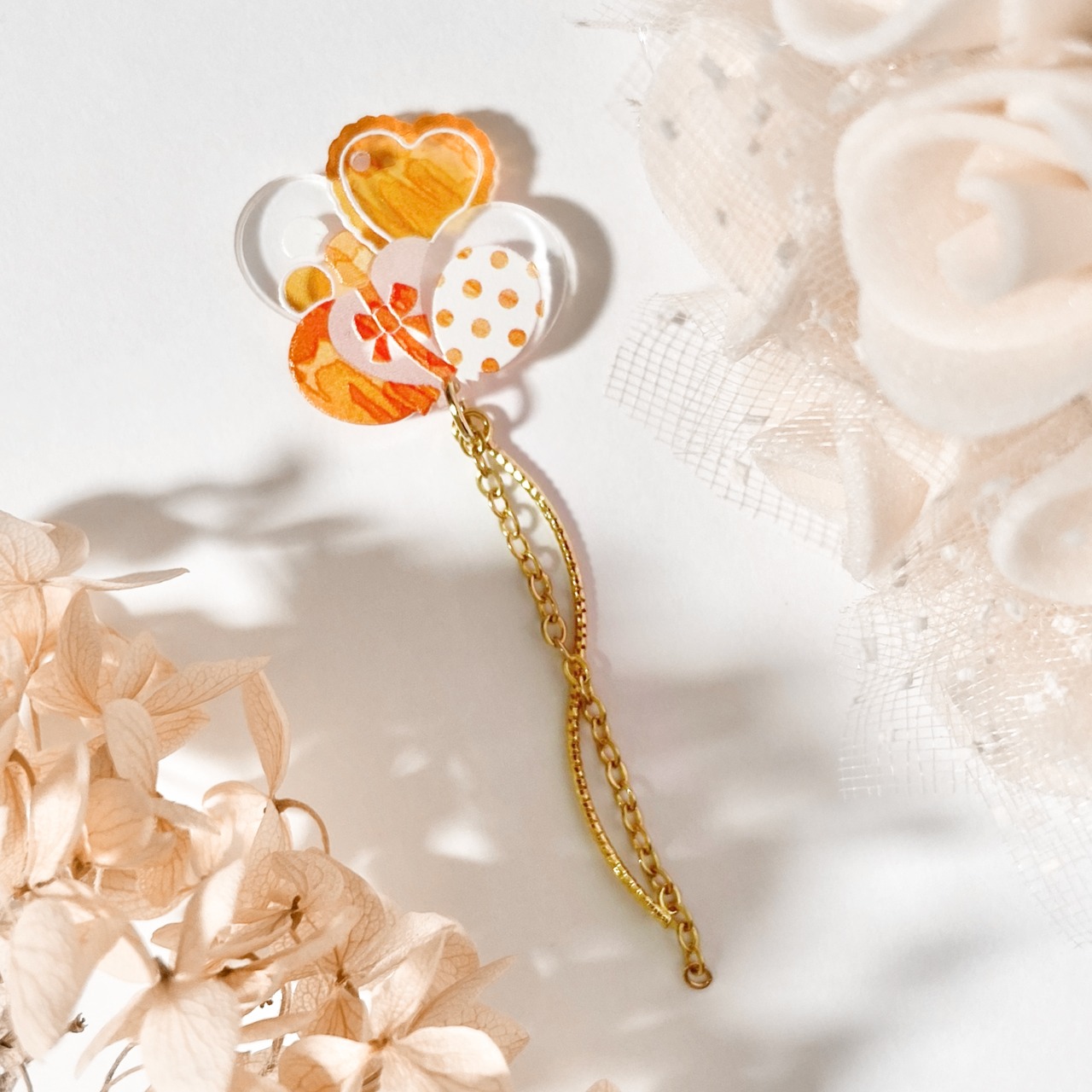 風船の紐をイメージしたゴールドチェーンやウェーブパーツが揺れて、華やかな雰囲気です。