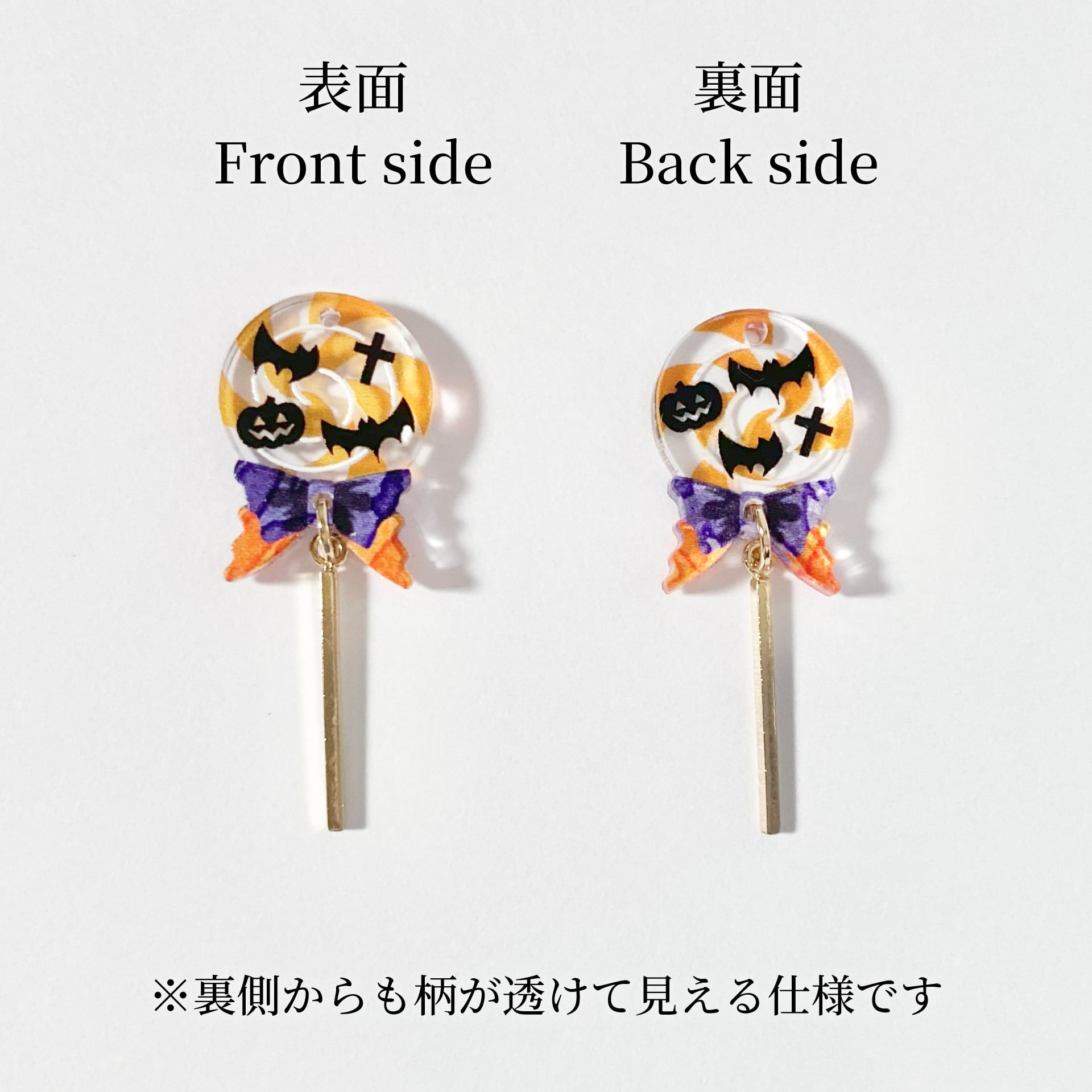 甘いモチーフとデザインながら小ぶりで目立ちすぎず、ゴールドパーツの輝きが上品なため、ワンポイントとしてハロウィン気分を味わうのにぴったりです。