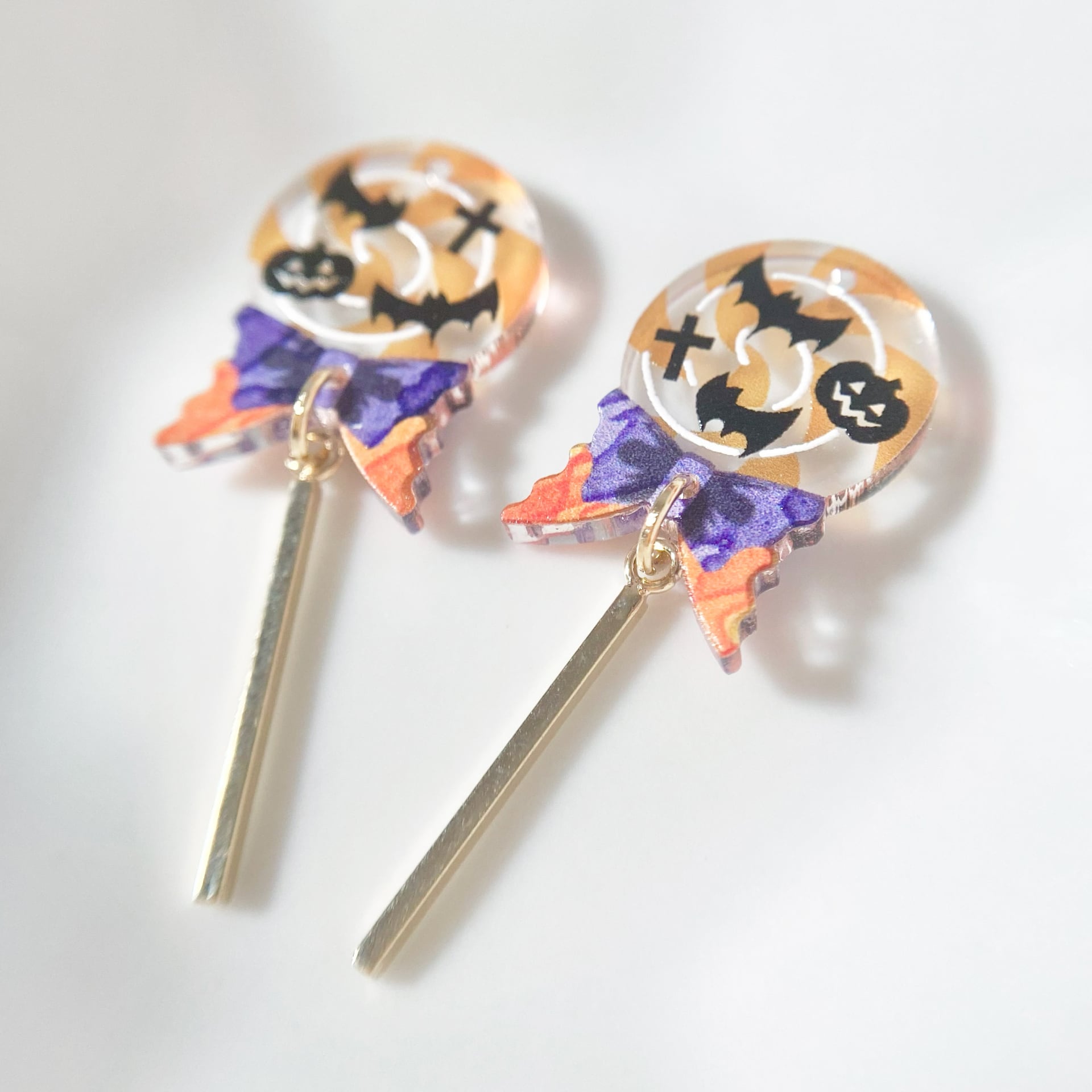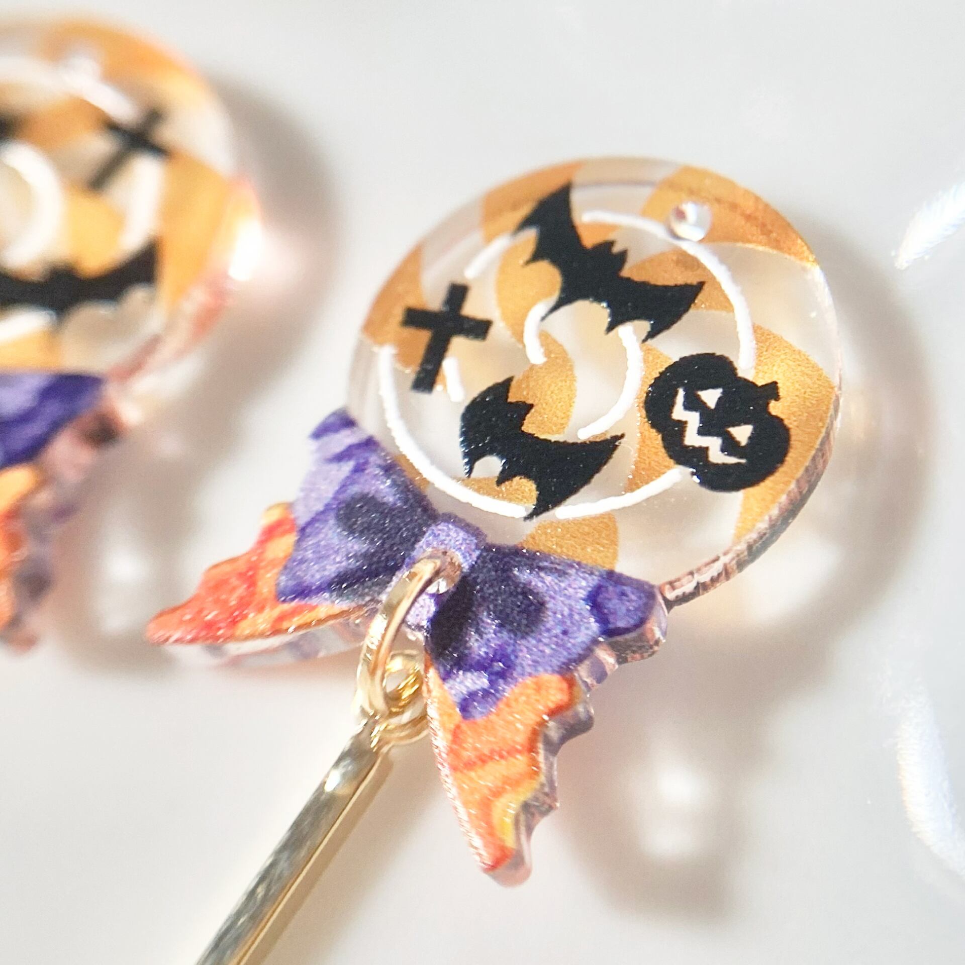甘いモチーフとデザインながら小ぶりで目立ちすぎず、ゴールドパーツの輝きが上品なため、ワンポイントとしてハロウィン気分を味わうのにぴったりです。