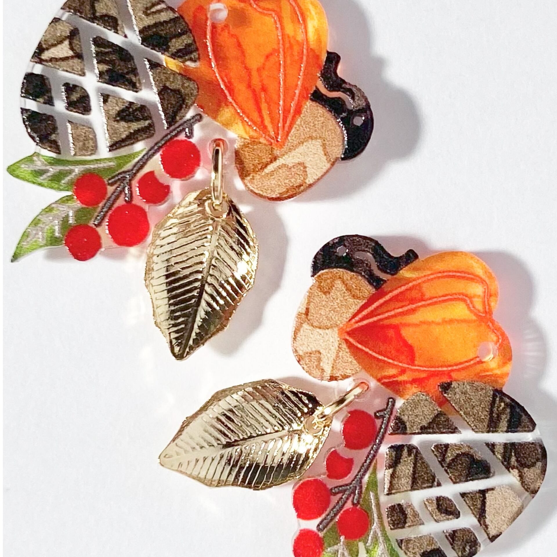 秋冬の植物をモチーフとした耳飾り、《Harvest》。