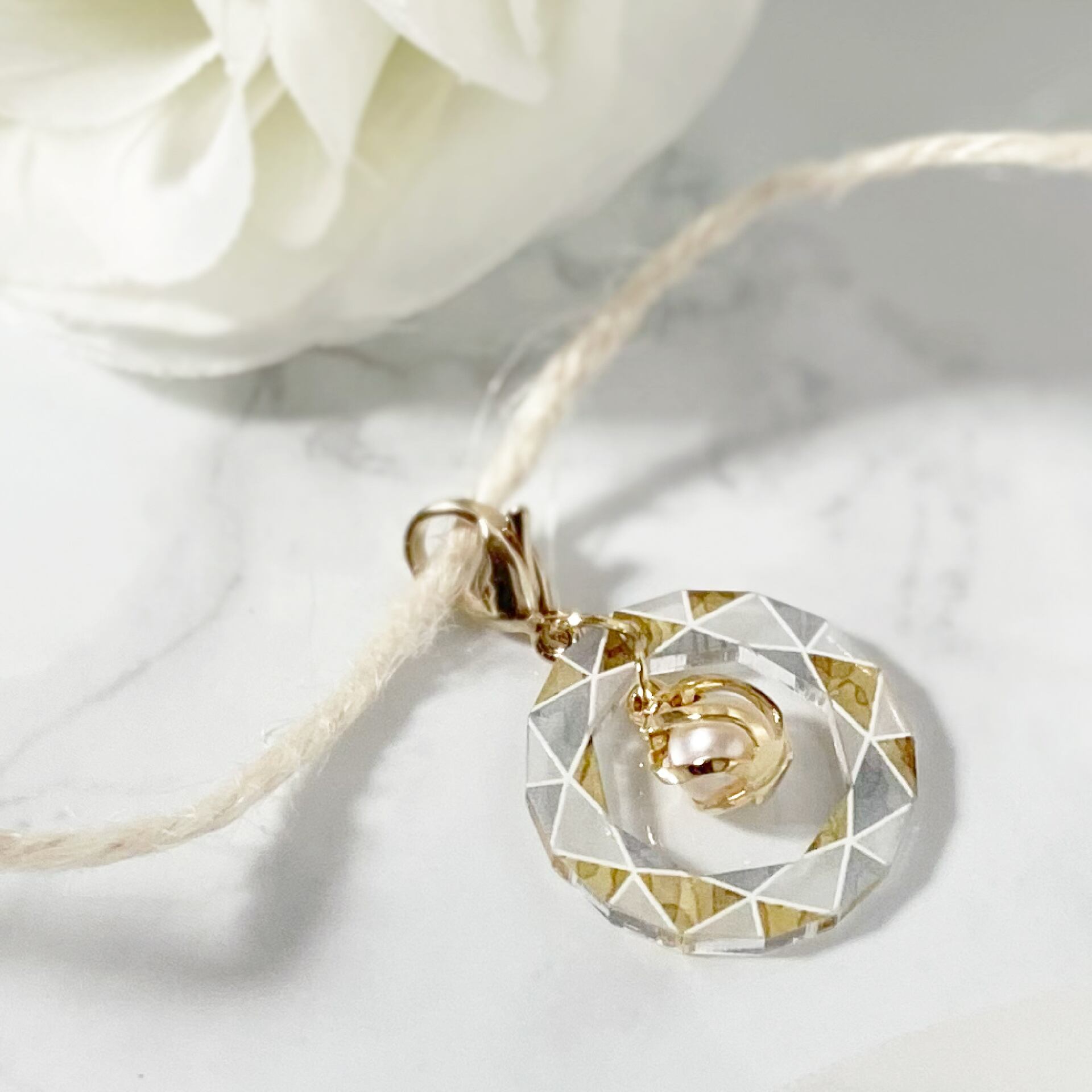 バッグやポーチの金具に添えたり、ギフトに添える小物としてもぴったりのチャームです。