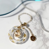くすみ感のあるゴールドとシルバーが落ち着いた色味のリング。幾何学模様のリースデザインで、指先に上品なアクセントを与えます。サイズはコンパクトで、手元をさりげなく彩る一点です。