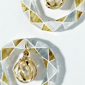 ゴールドと淡いシルバーの配色で、上品でシックなクリスマスらしさを演出。中央のパール入りメタルパーツが揺れ、華やかさを添えます。