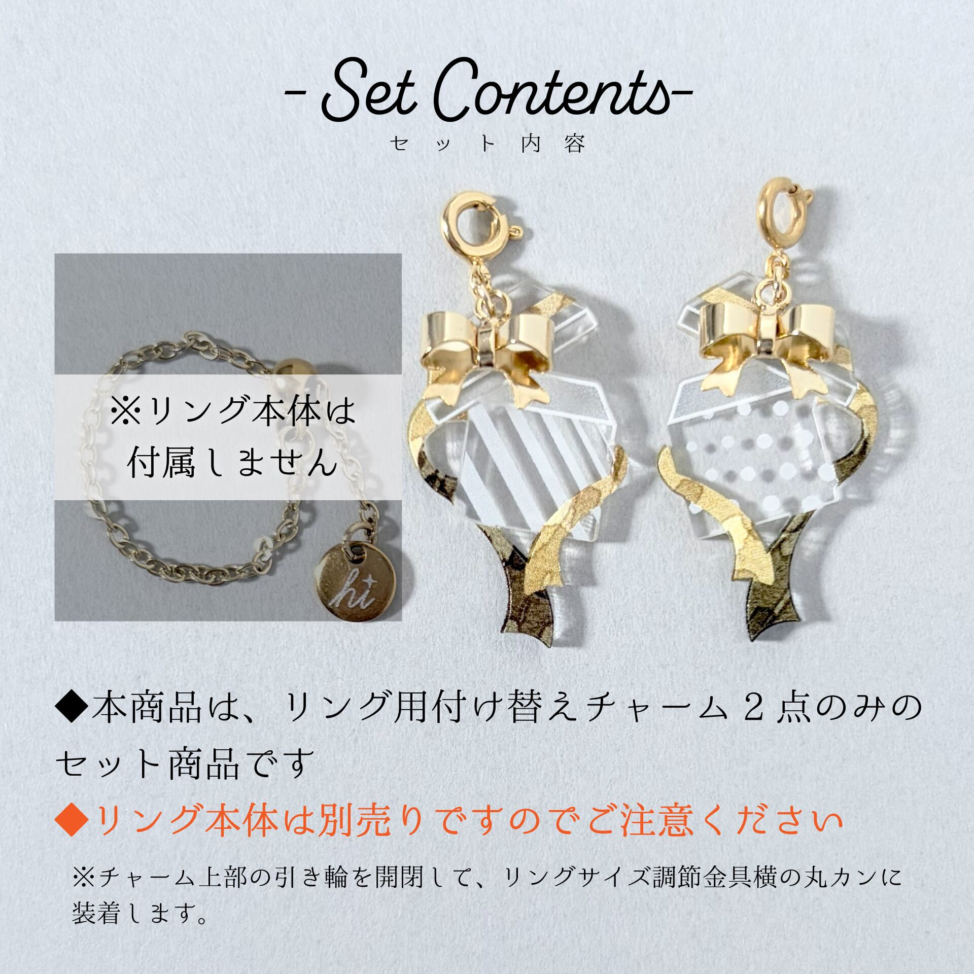 ※本商品はリングチャーム2点のみのセットです。リング本体(別売)は別途お買い求めください。