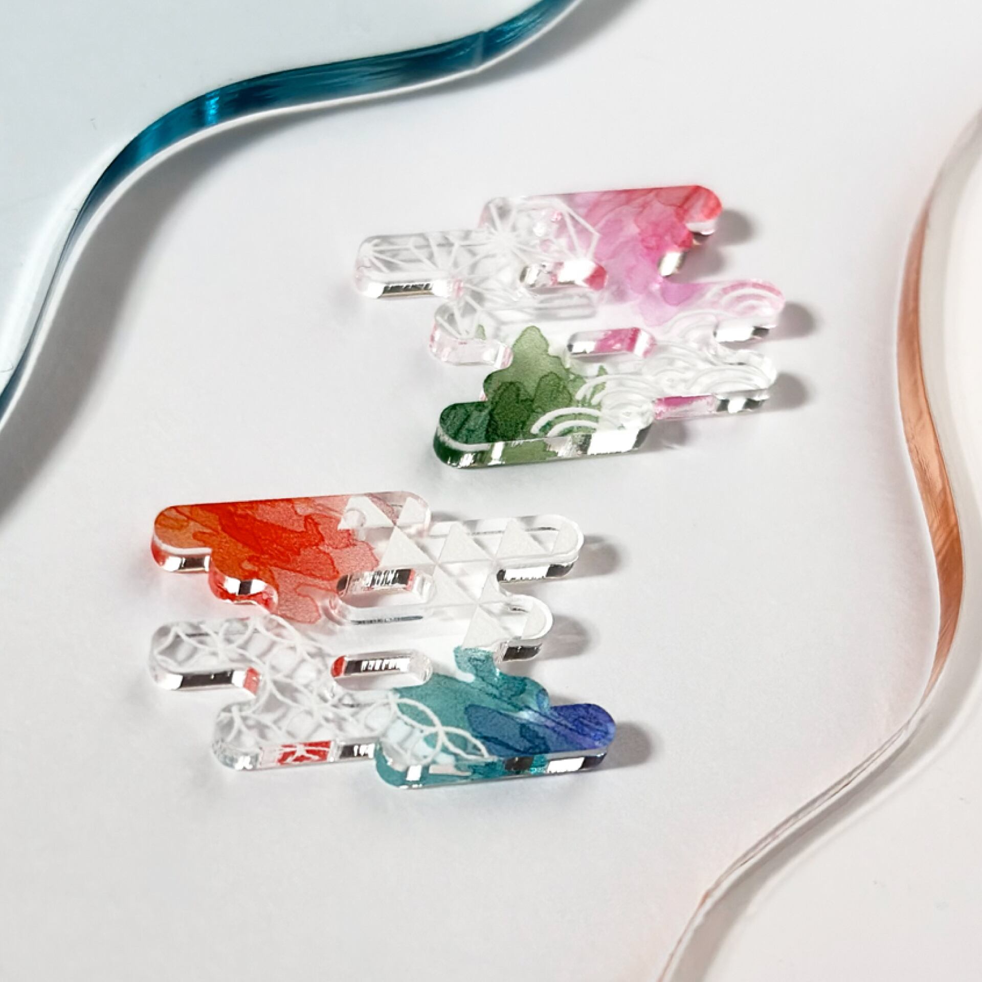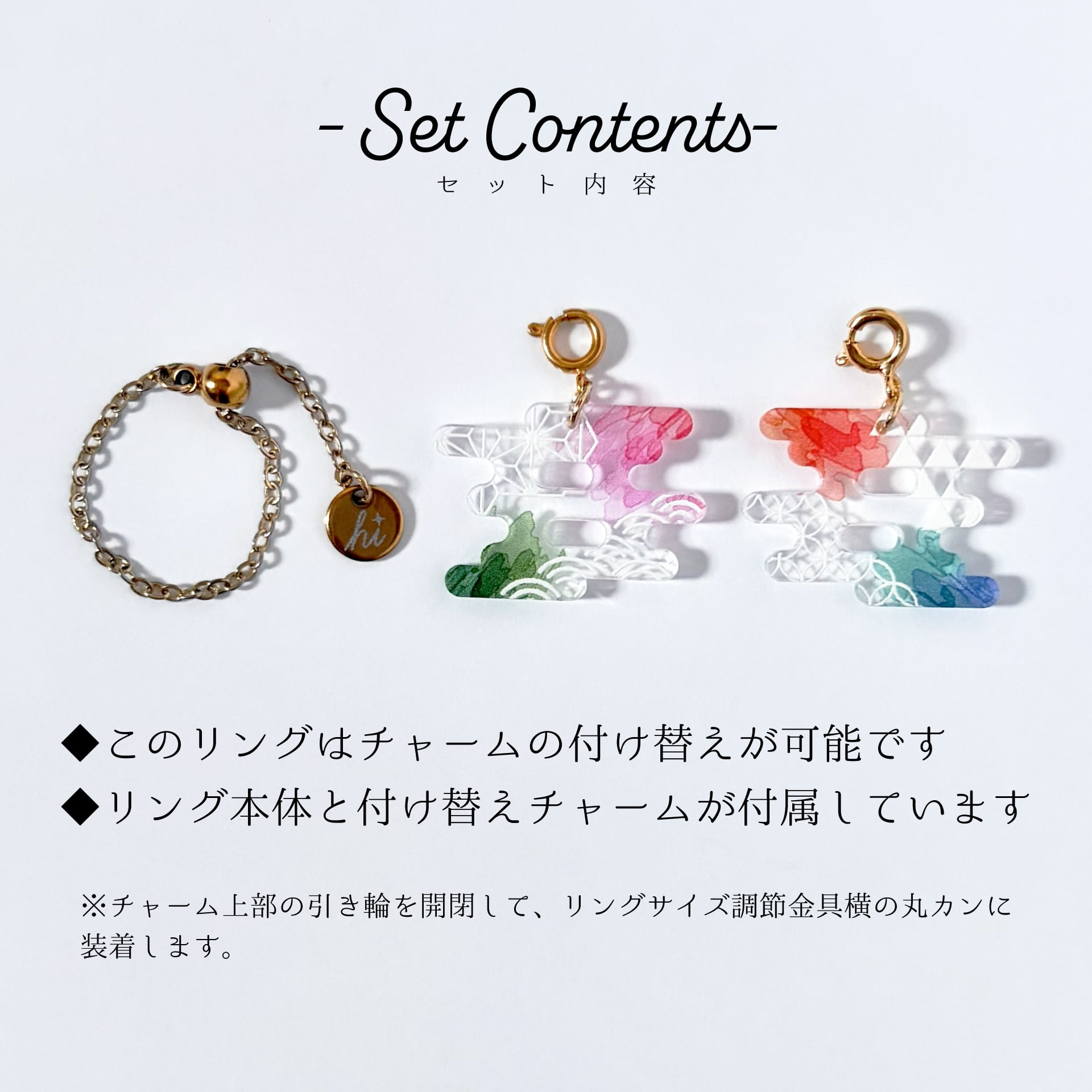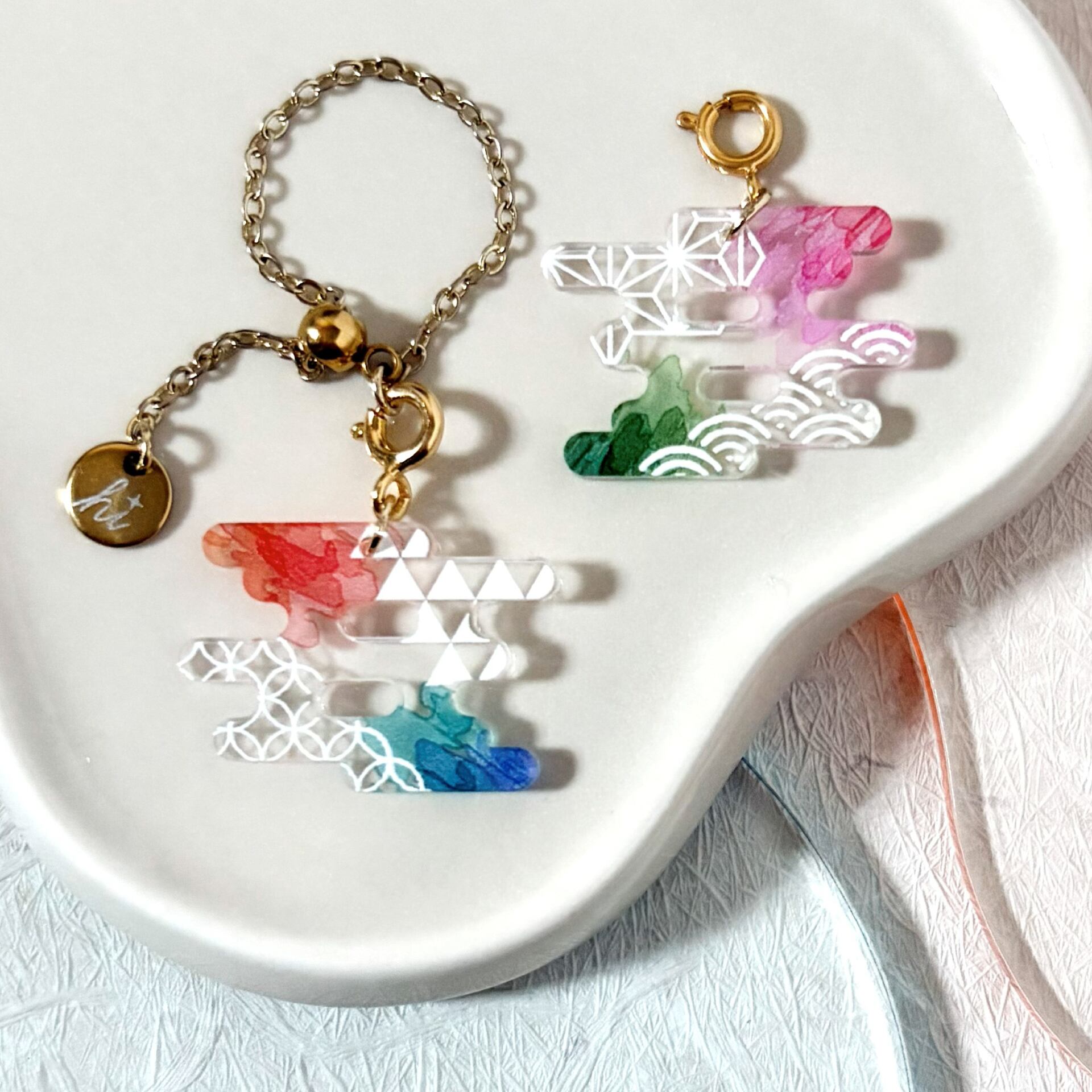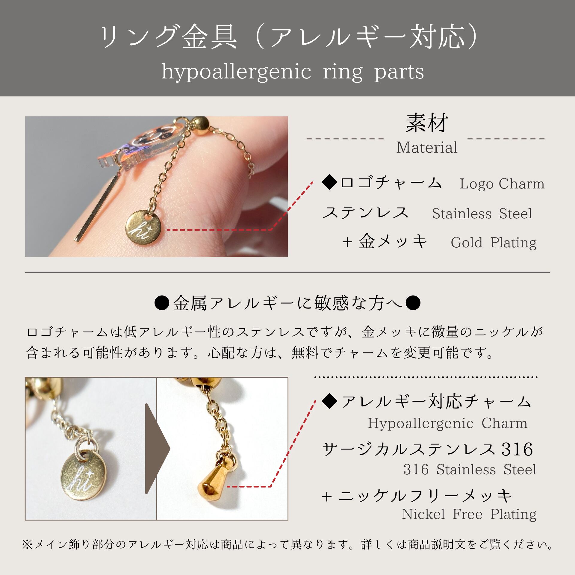 アクリルに丸く抜き加工を施し、霞がたなびくようなやわらかな印象を表現。縦1.5cm、横2.1cmのパーツが、手先に上品な存在感を添えます。