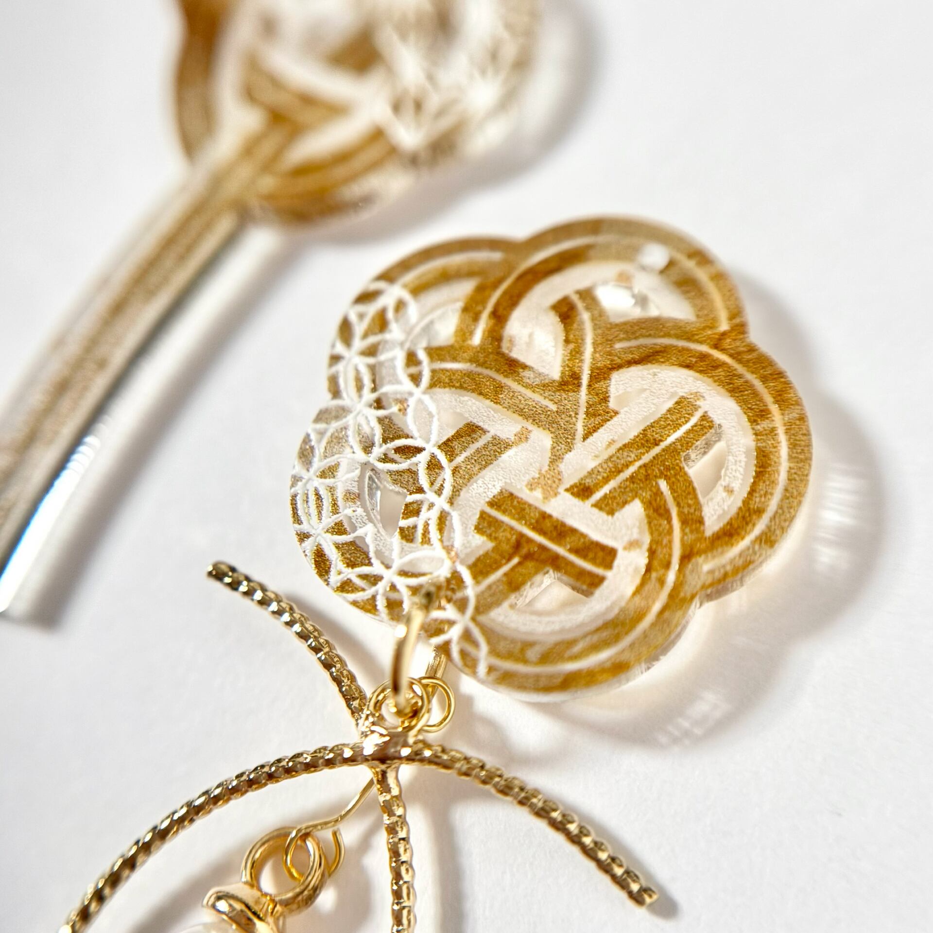 あわじ結びと梅結びを組み合わせ、アクリルの透明感が光をやわらかく透かします。