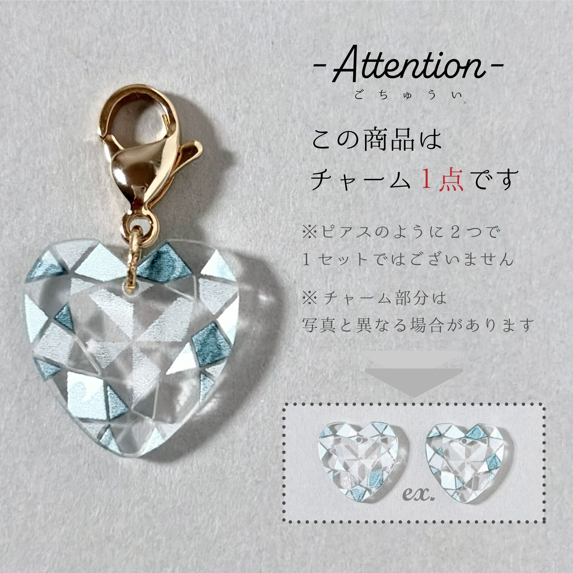 シンプルで透明感のあるクリアカラーのハートチャーム。