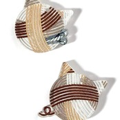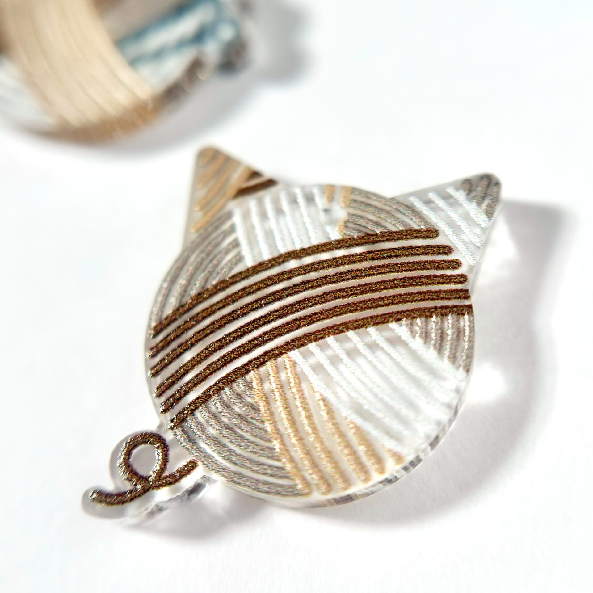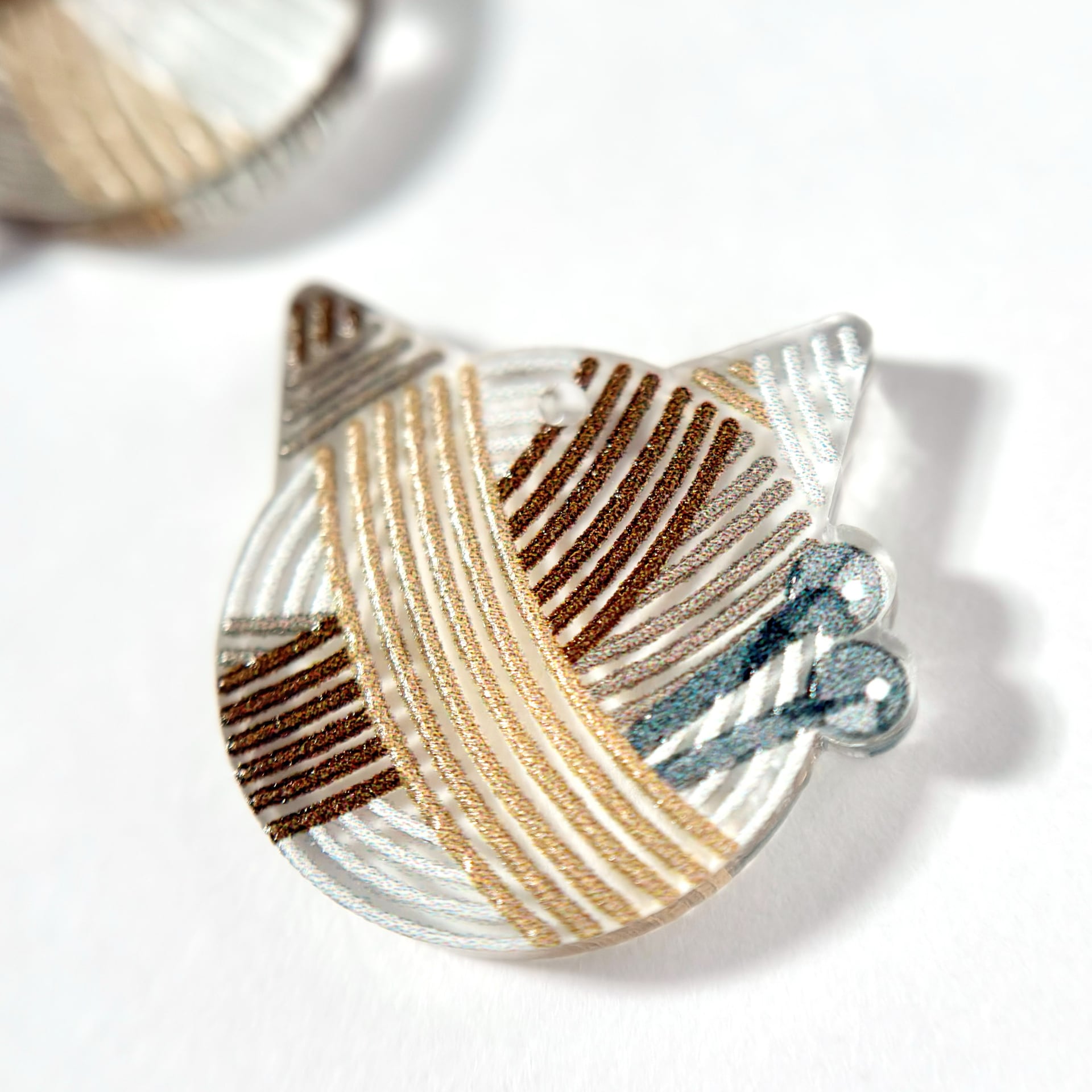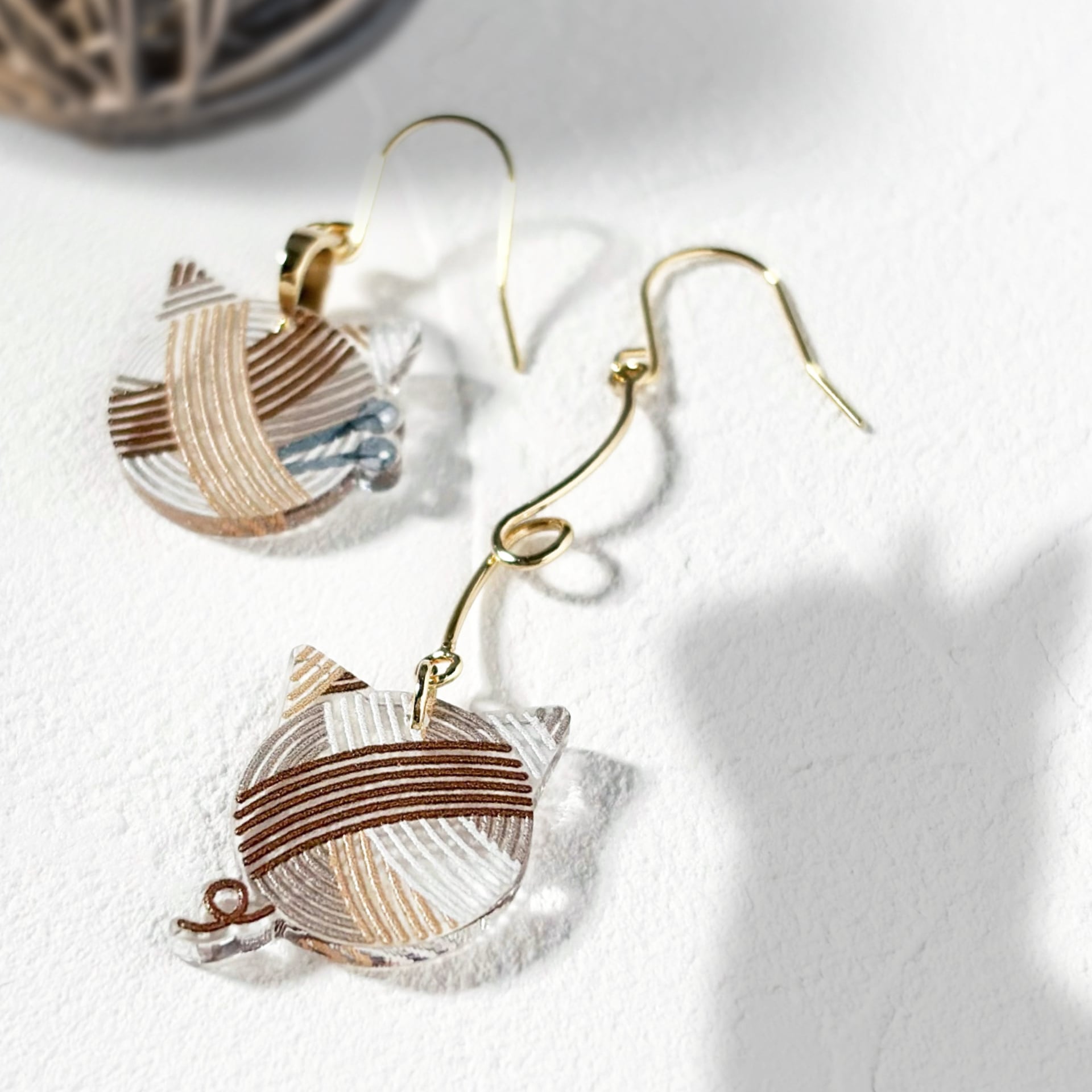 猫型の毛糸玉をモチーフにした耳飾り、《Cat ball》。