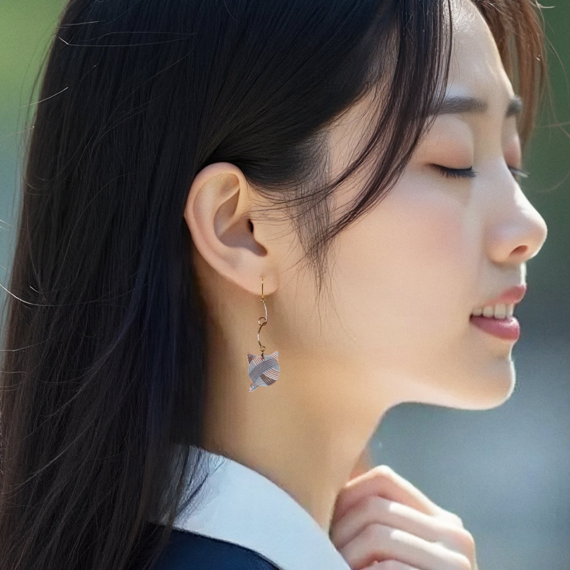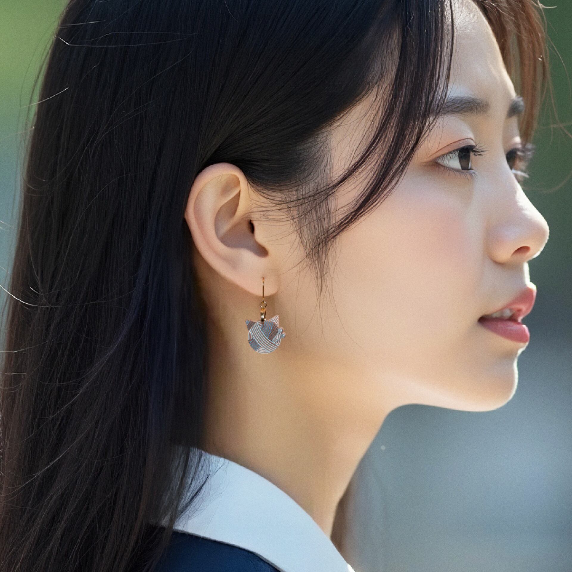 猫型の毛糸玉をモチーフにした耳飾り、《Cat ball》。