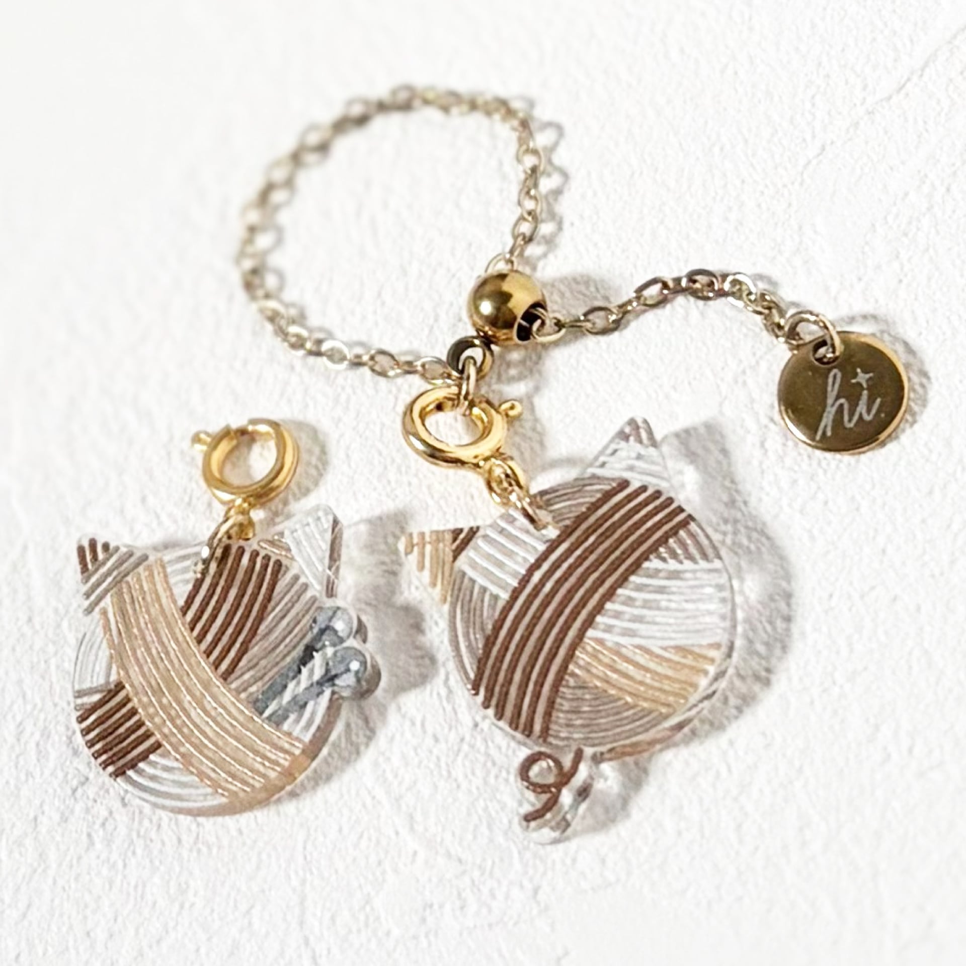 猫型の毛糸玉をモチーフにしたリングチャーム、《Cat ball》。