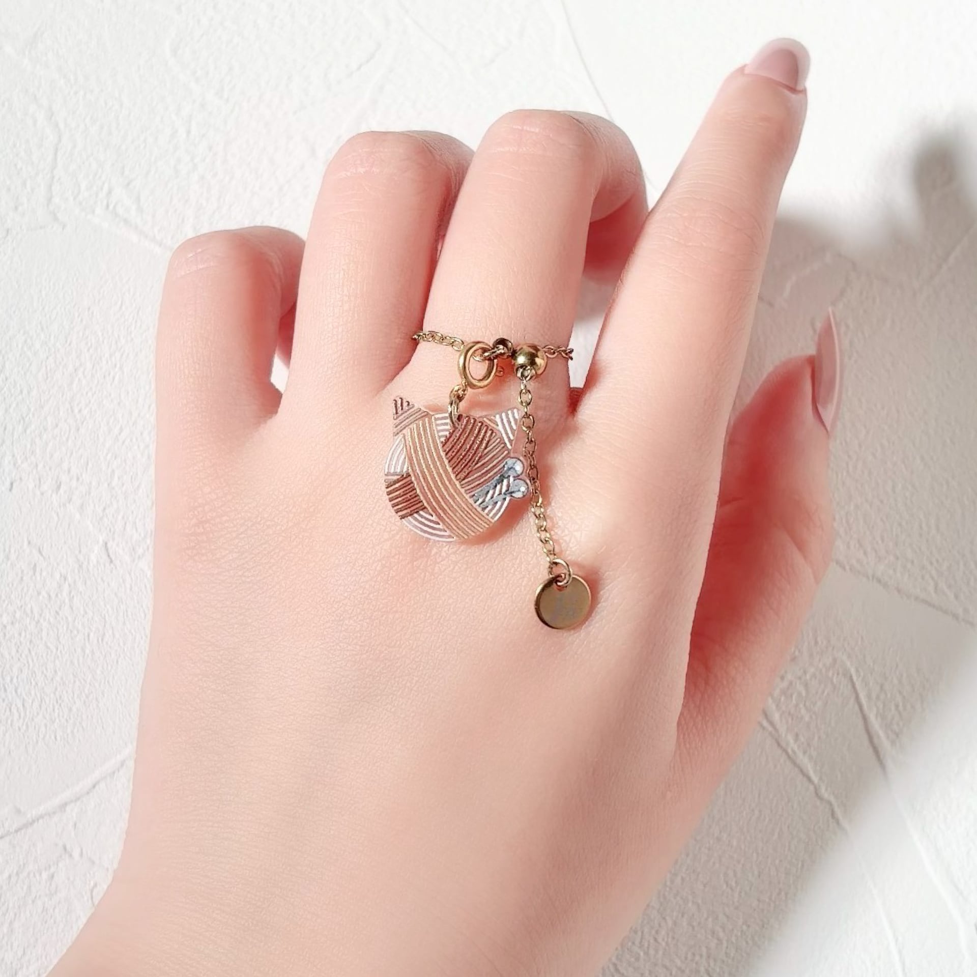 毛糸玉モチーフを指元で楽しめるリングチャーム。