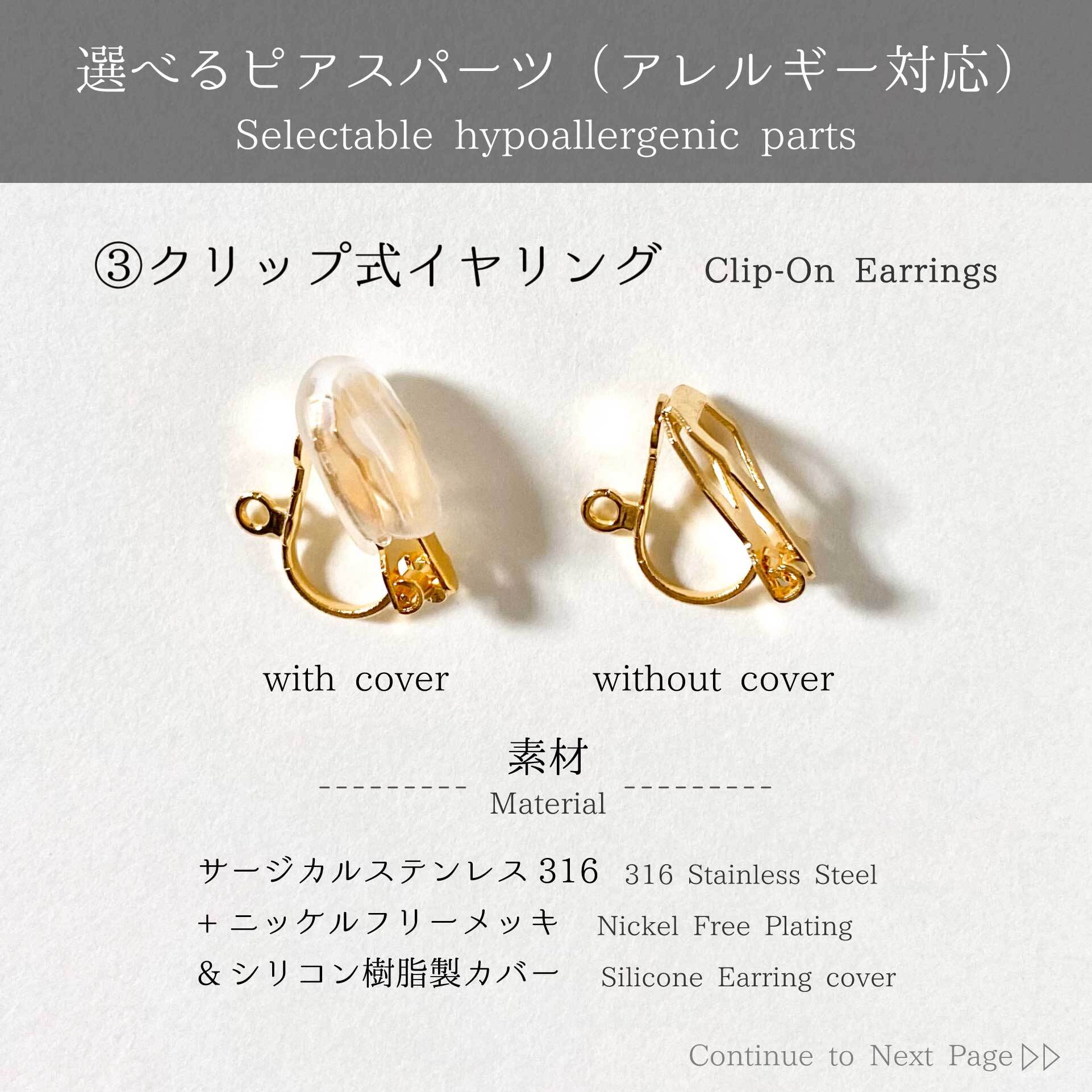 ③サージカルステンレス製クリップ式イヤリング(耳痛軽減カバー付き)