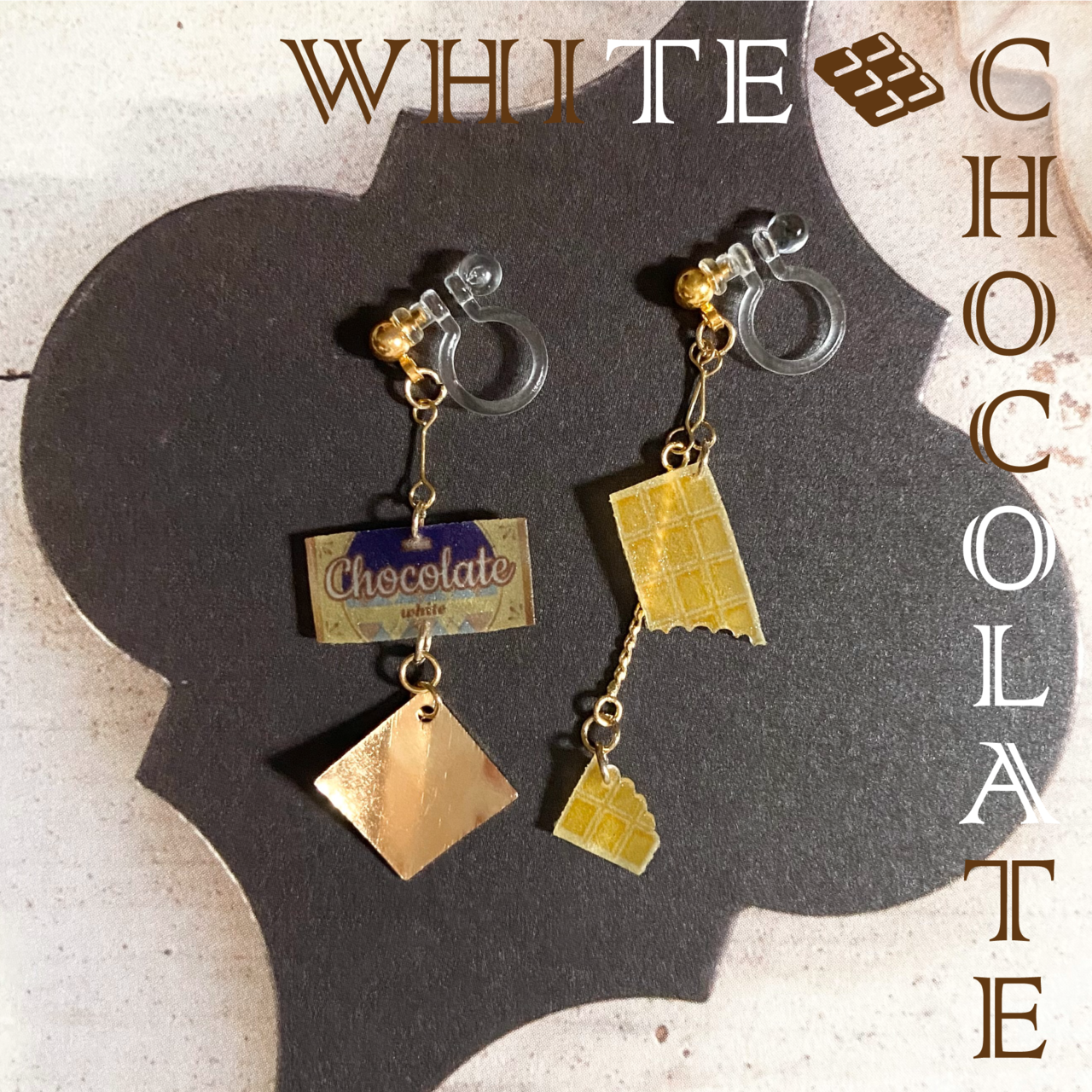 ゆれる♪ 板チョコひとかじりピアス【ホワイトチョコ】