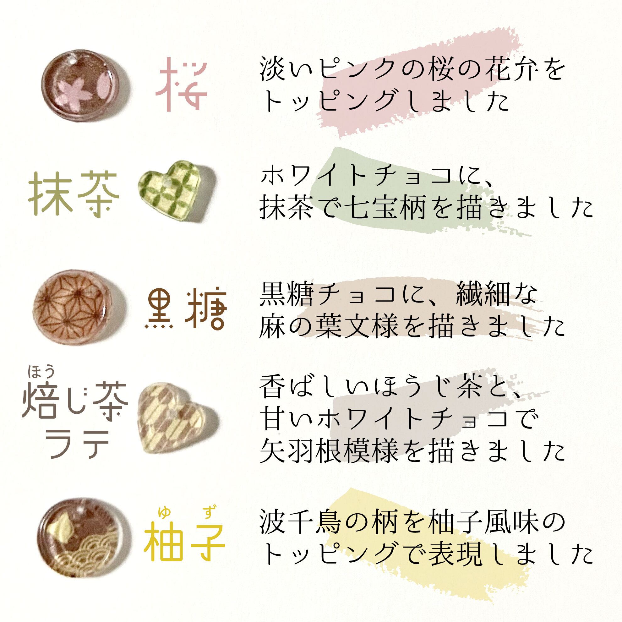 5種の和風アソートチョコレートは、それぞれ和の味をイメージして作っています。
