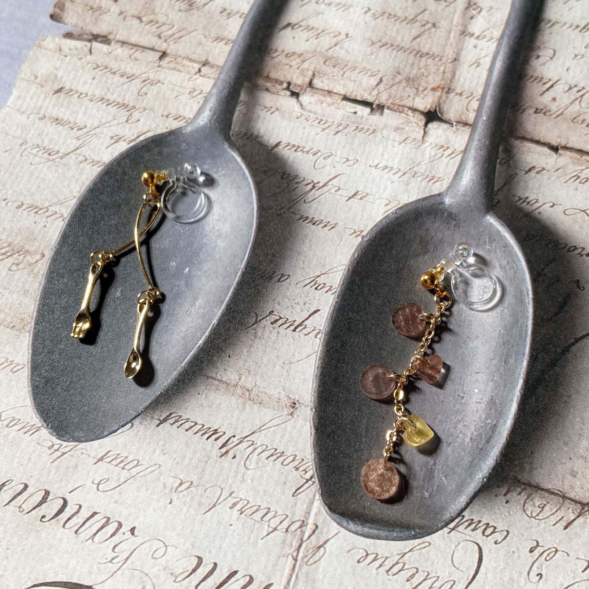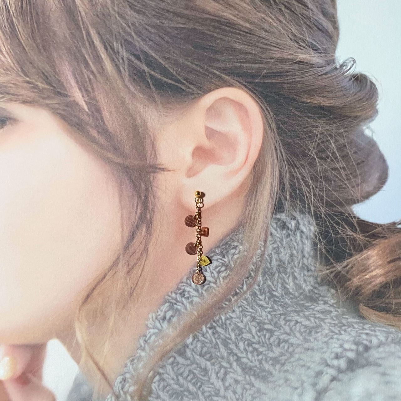 5種類のアソートチョコレートが、チェーンでゆらゆら繋がったピアスです。