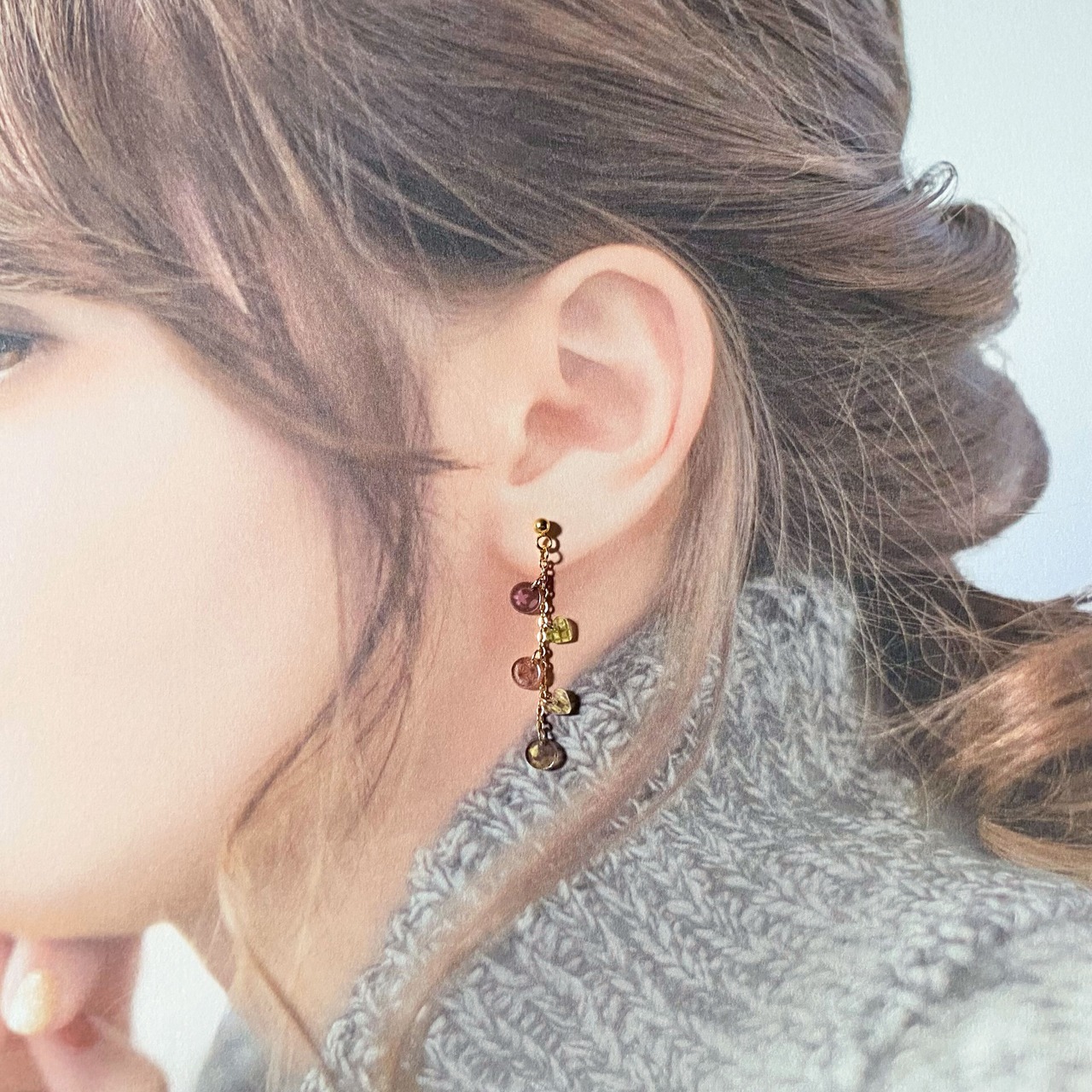 5種類のアソートチョコレートが、チェーンでゆらゆら繋がったピアスです。