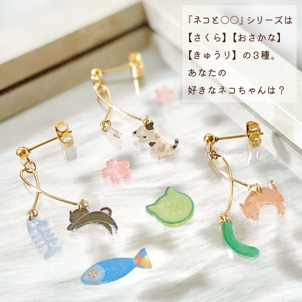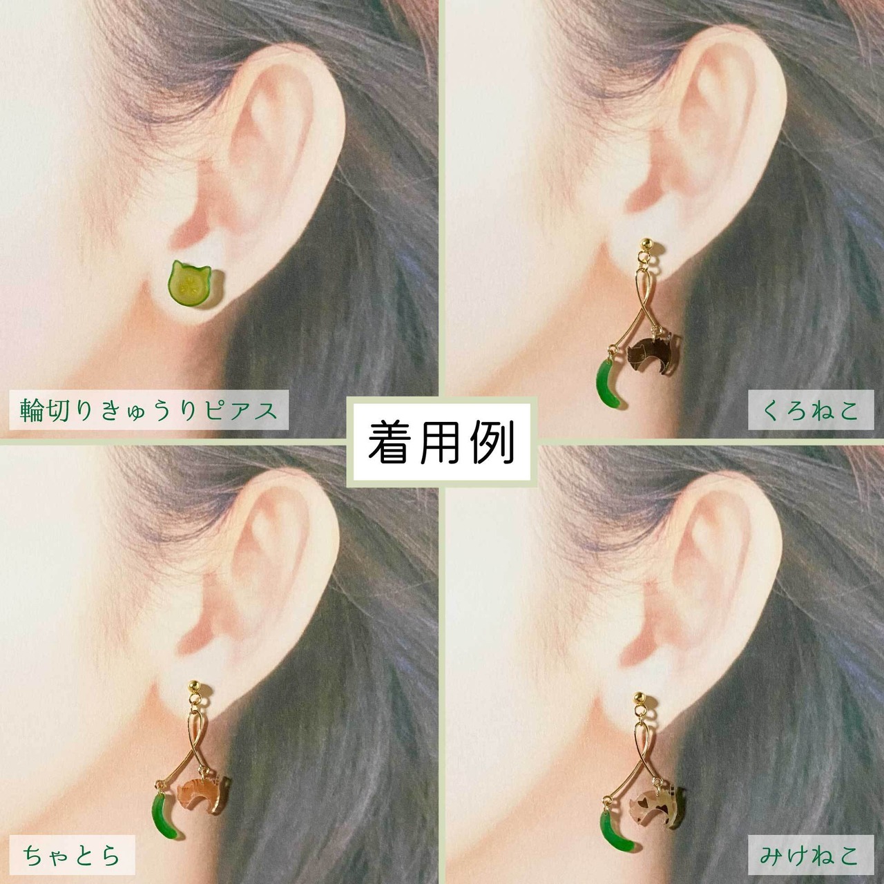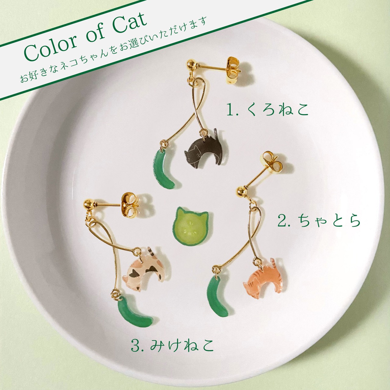 こちらのピアスは『ネコときゅうり』バージョンです。