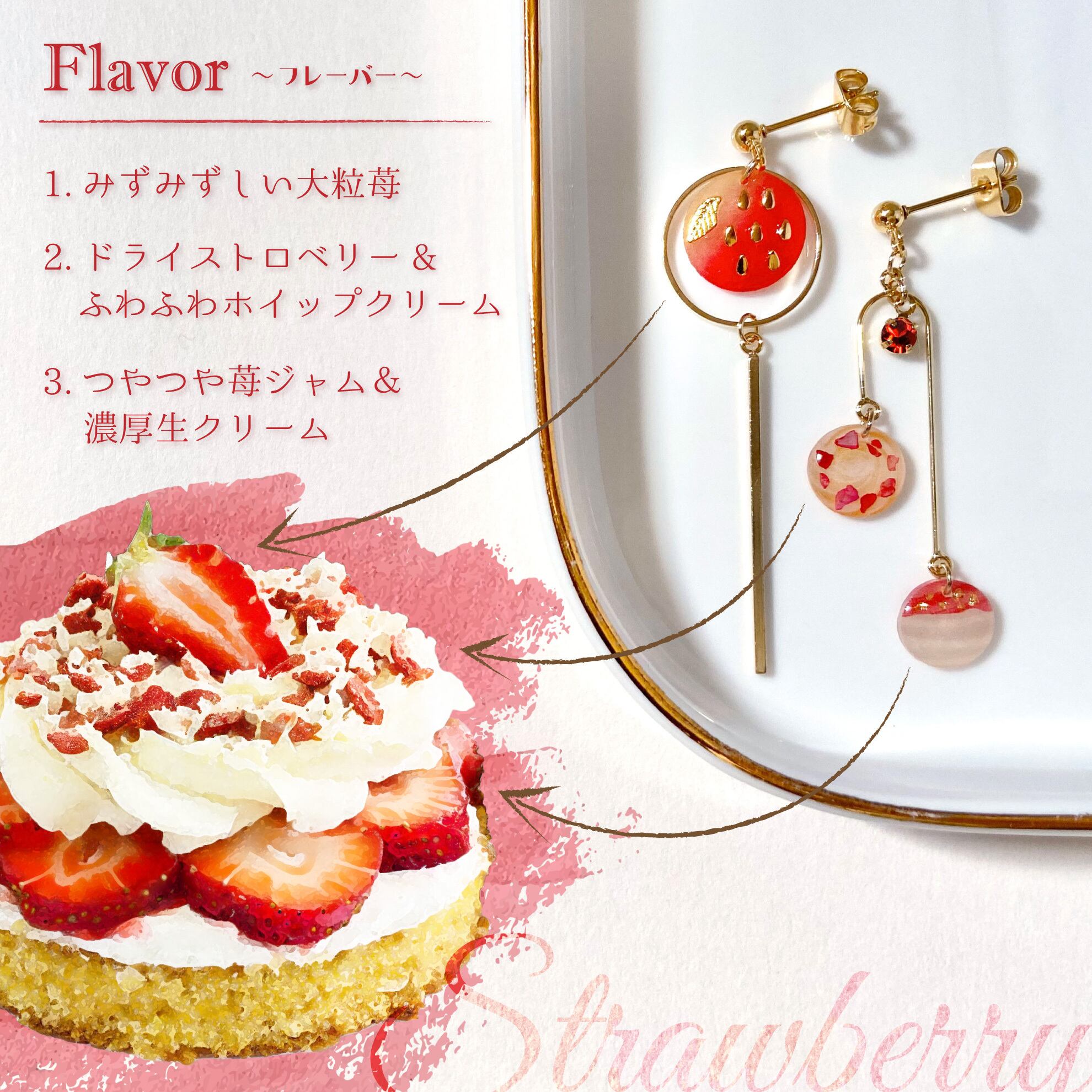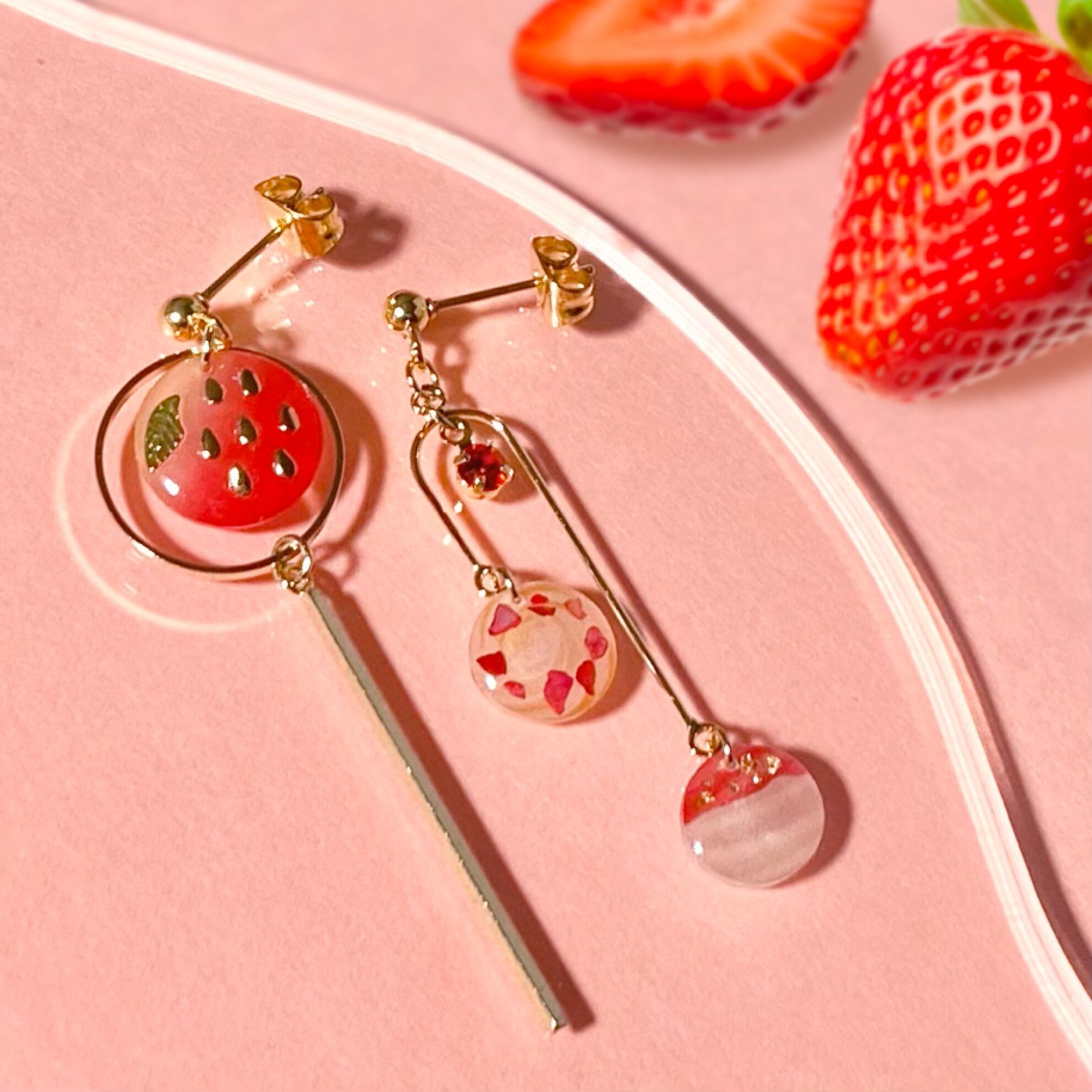 華やかな苺の香り漂うような、スイートな気分を引き立てるピアスです。