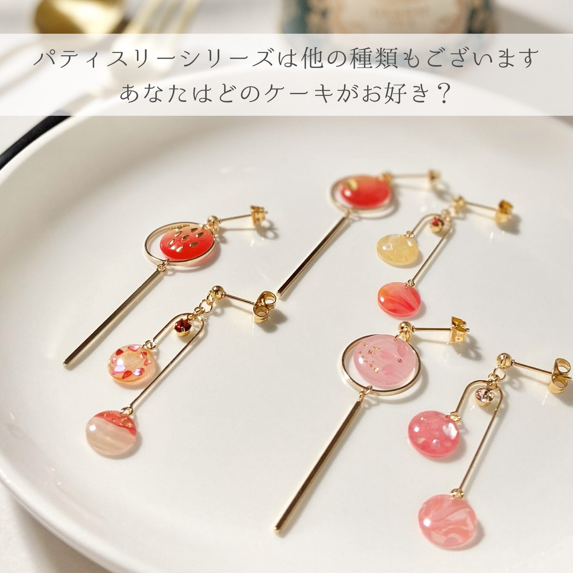 『Patisserie Hitoyura(パティスリー ひとゆら)』シリーズでは、本商品以外にもケーキモチーフのピアスを作っております