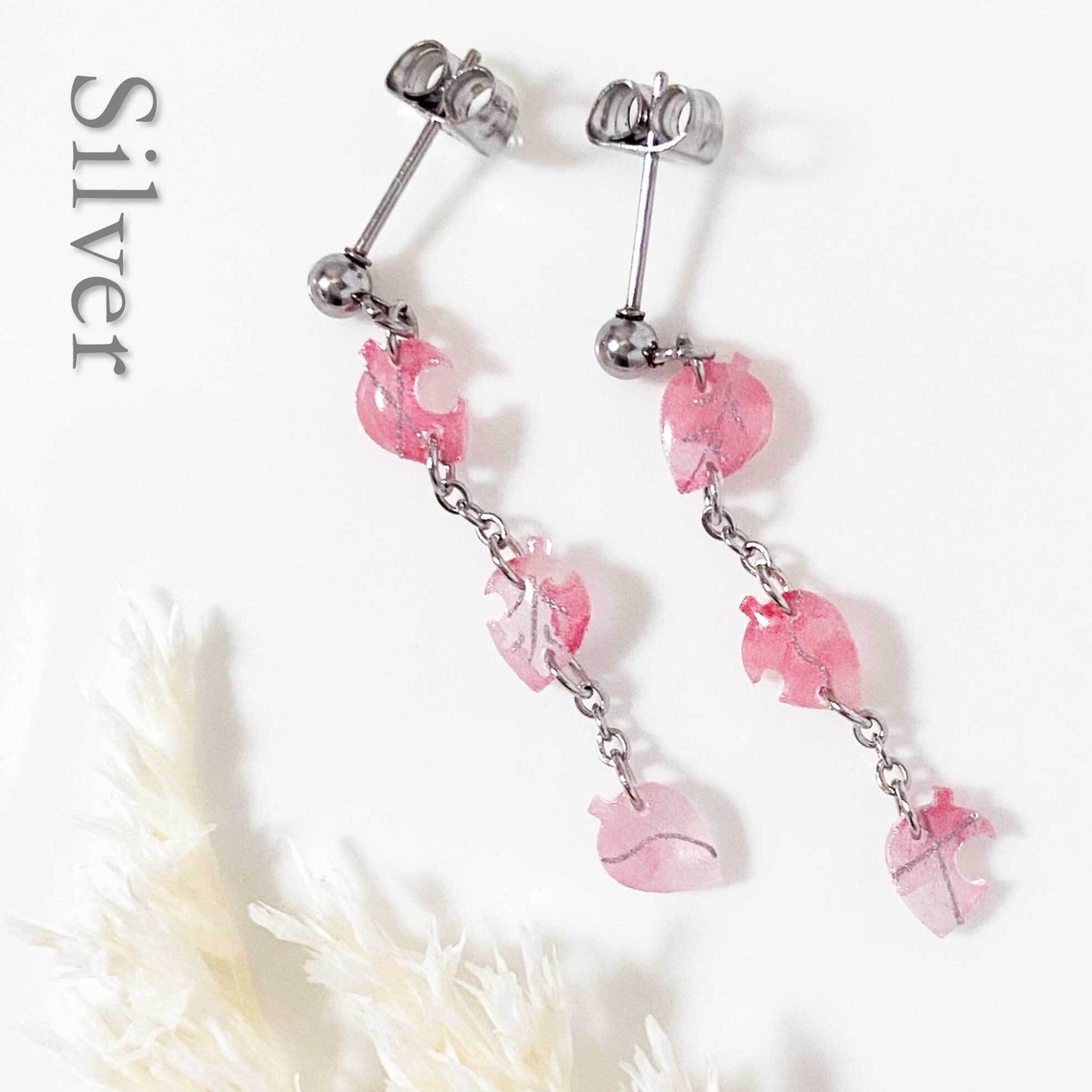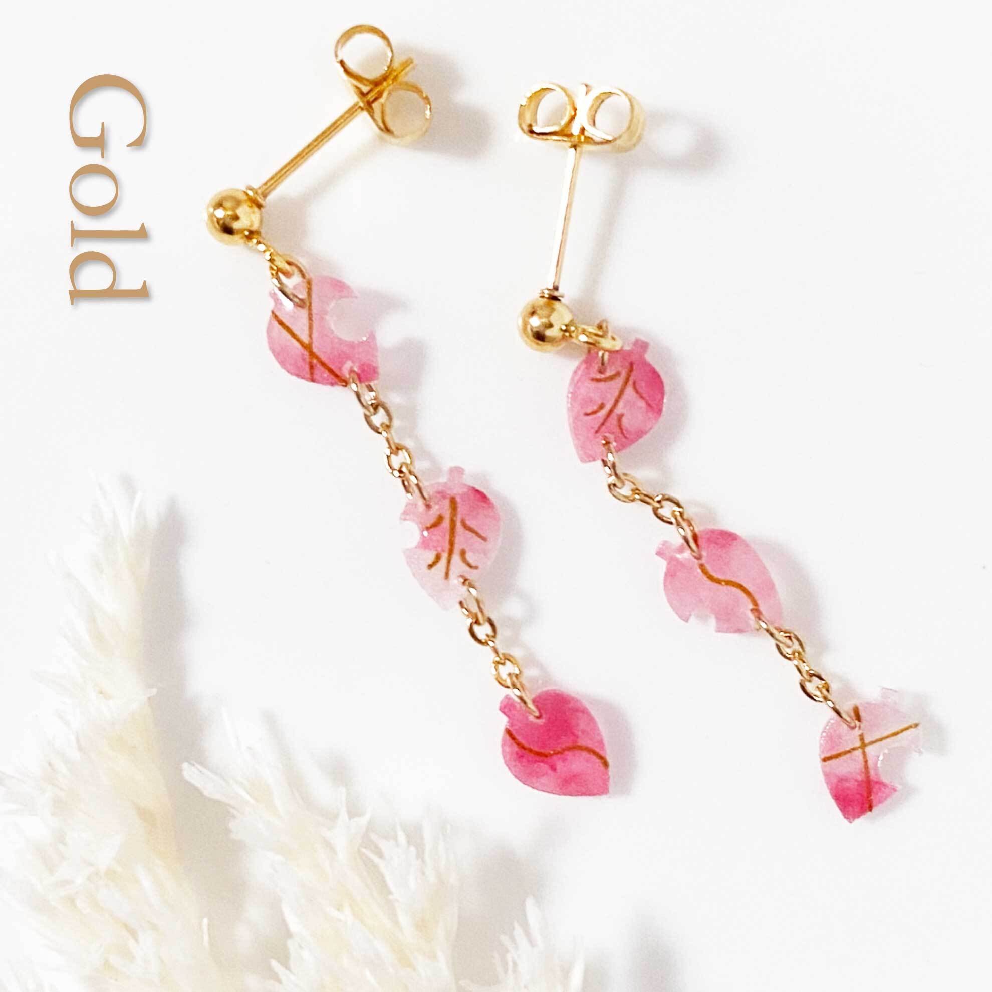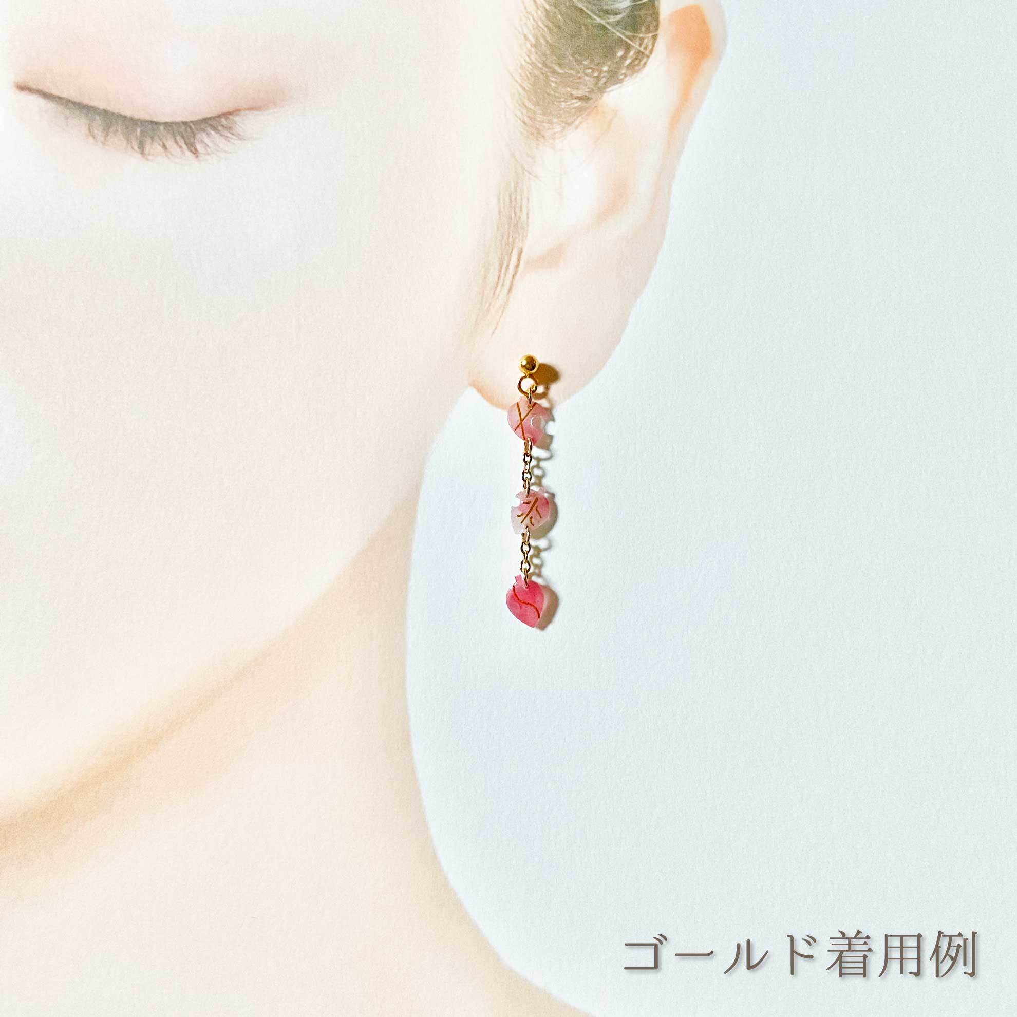 『ひらり』は、ひらひらと舞い落ちる3連の葉が耳元を彩るピアスです。