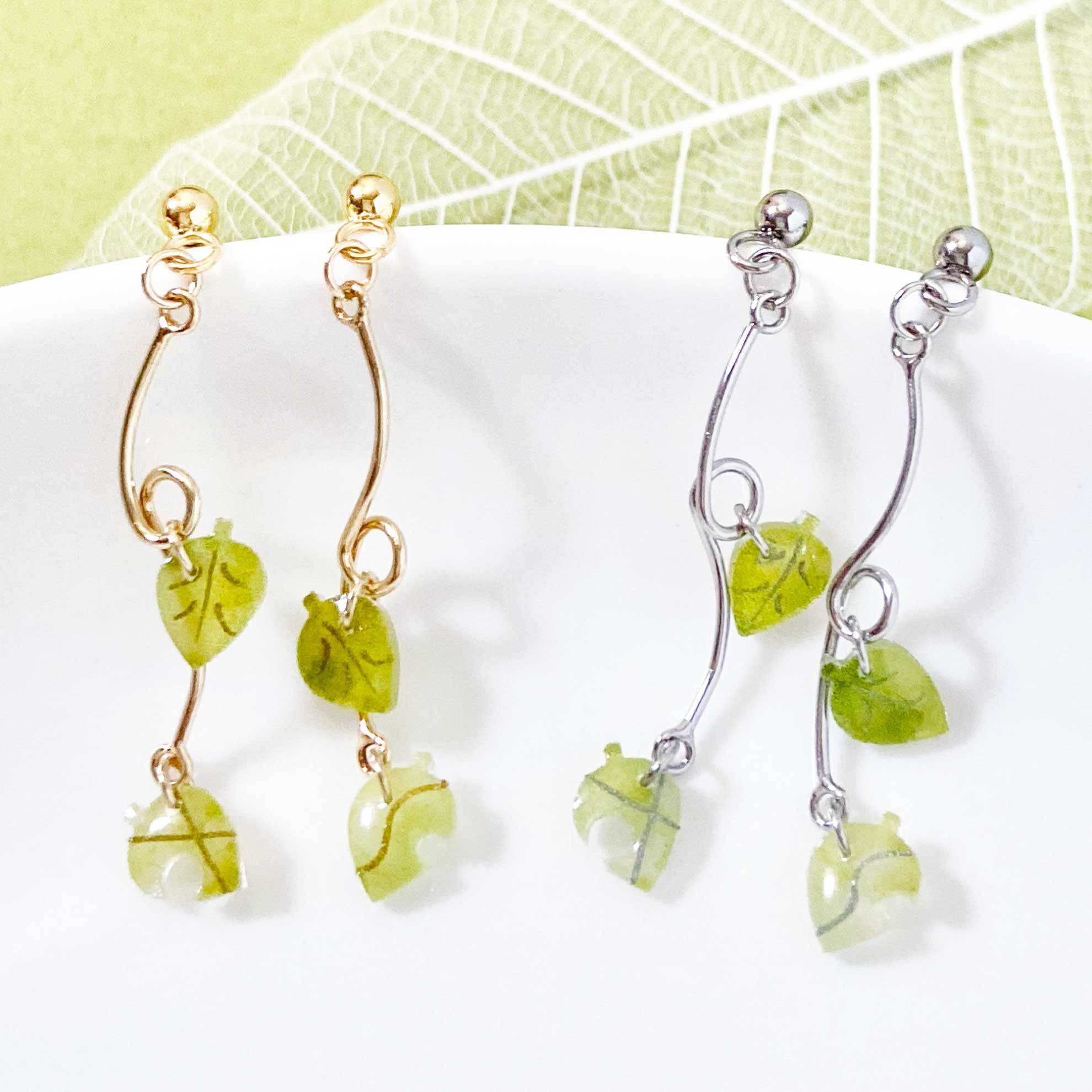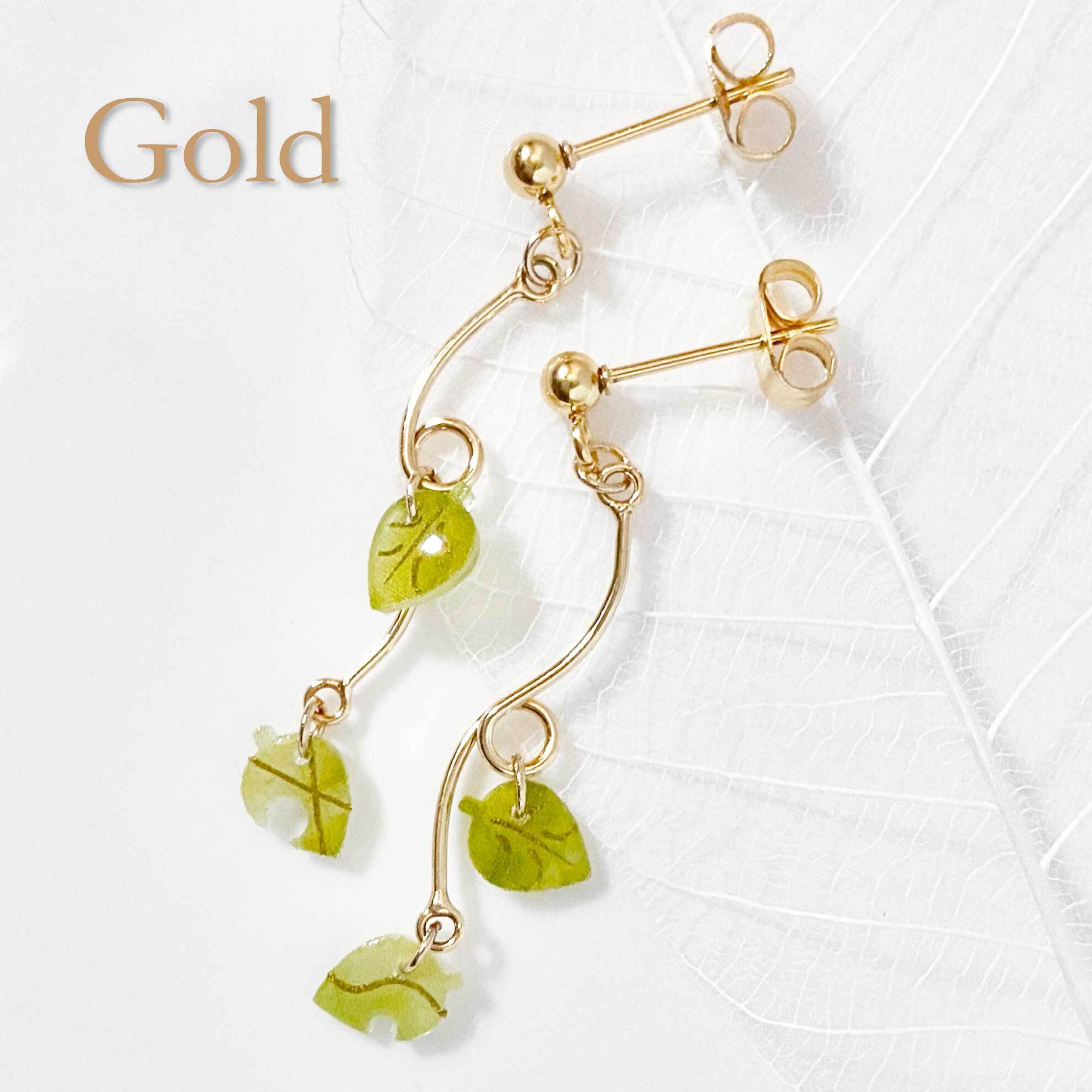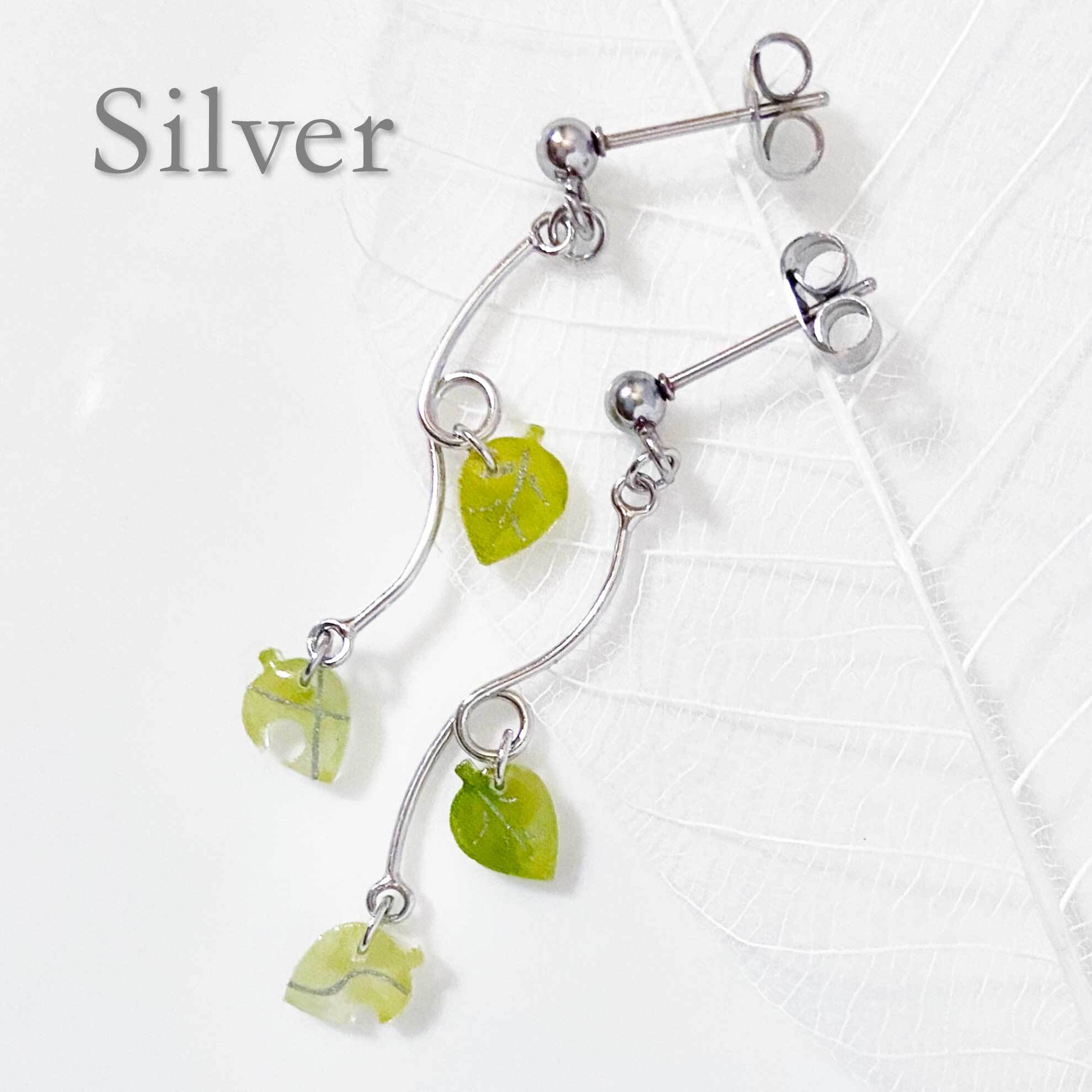 くるんとした曲線の可愛いパーツに小さな葉が揺れる、季節を問わずお使いいただけるアクセサリーです。