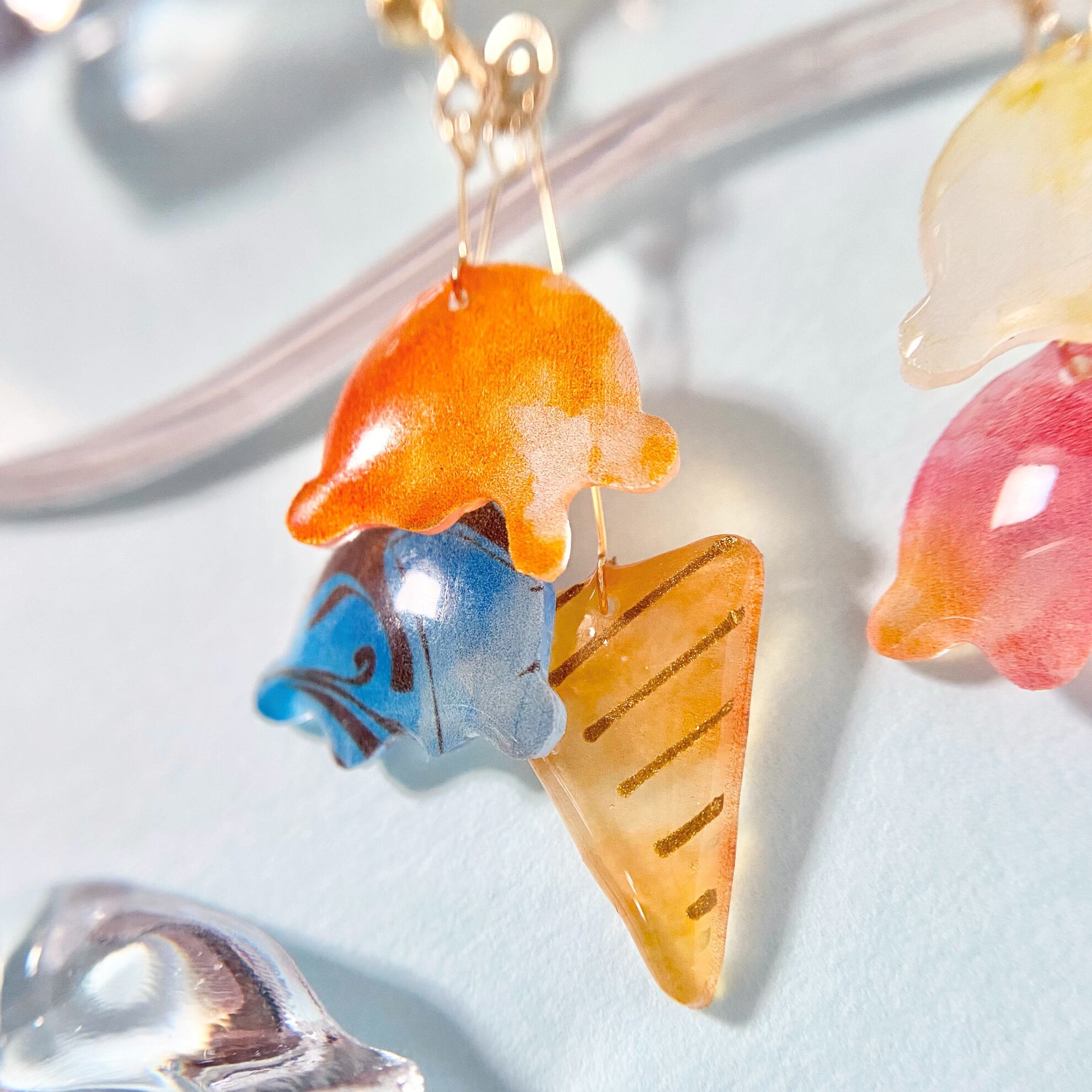 耳元で揺れるたびに、積み重なったアイスのバランスが変わって、その時々の表情が楽しめます。