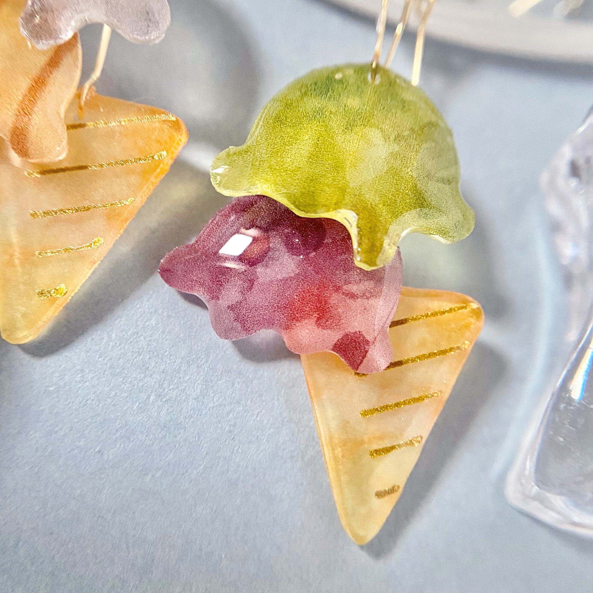耳元で揺れるたびに、積み重なったアイスのバランスが変わって、その時々の表情が楽しめます。
