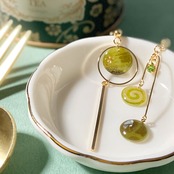 片側のピアスに揺れるクリスタルは、鮮やかで清涼感のある抹茶グリーンのカラーを使用。