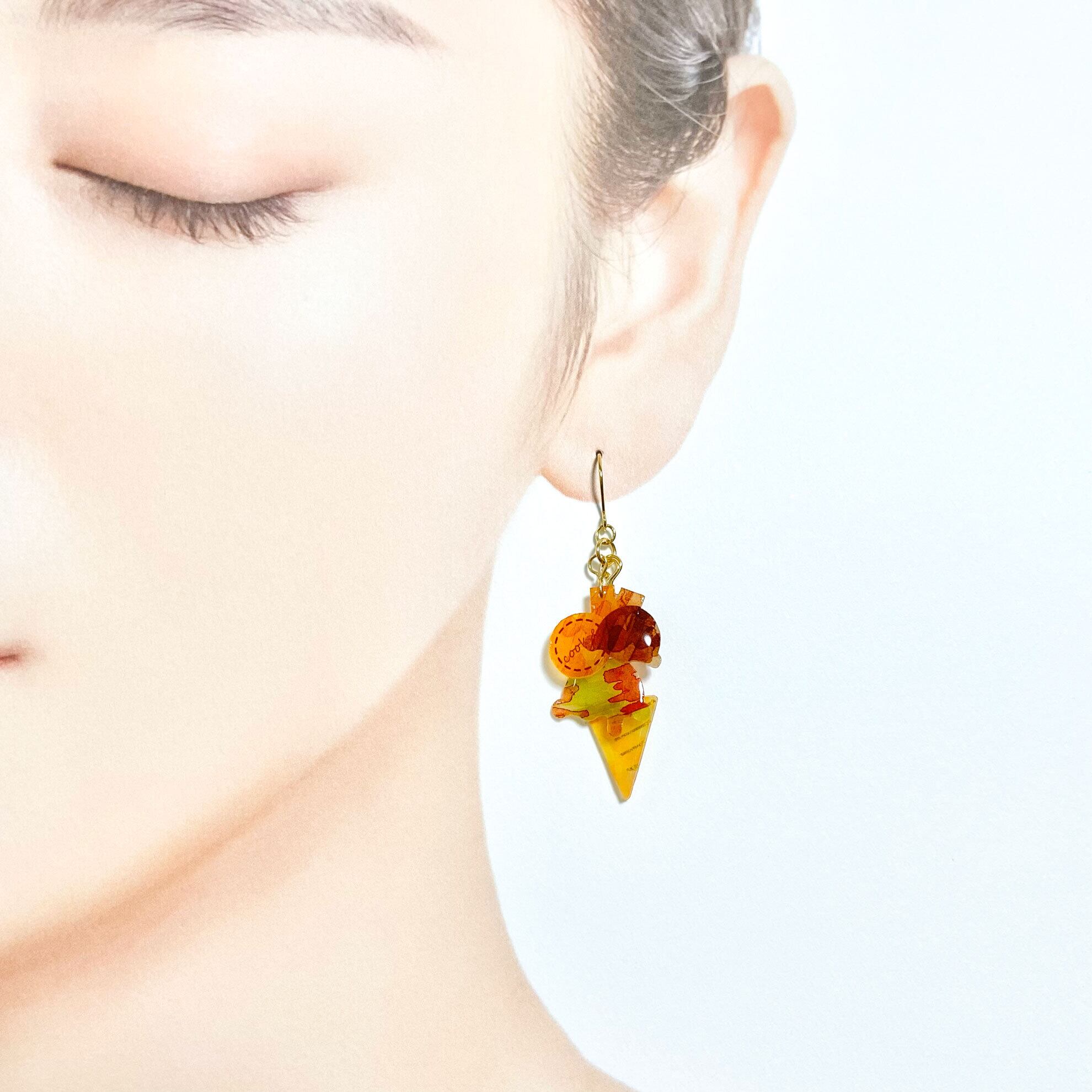 溶けかけのアイスクリームをモチーフにしたピアス。