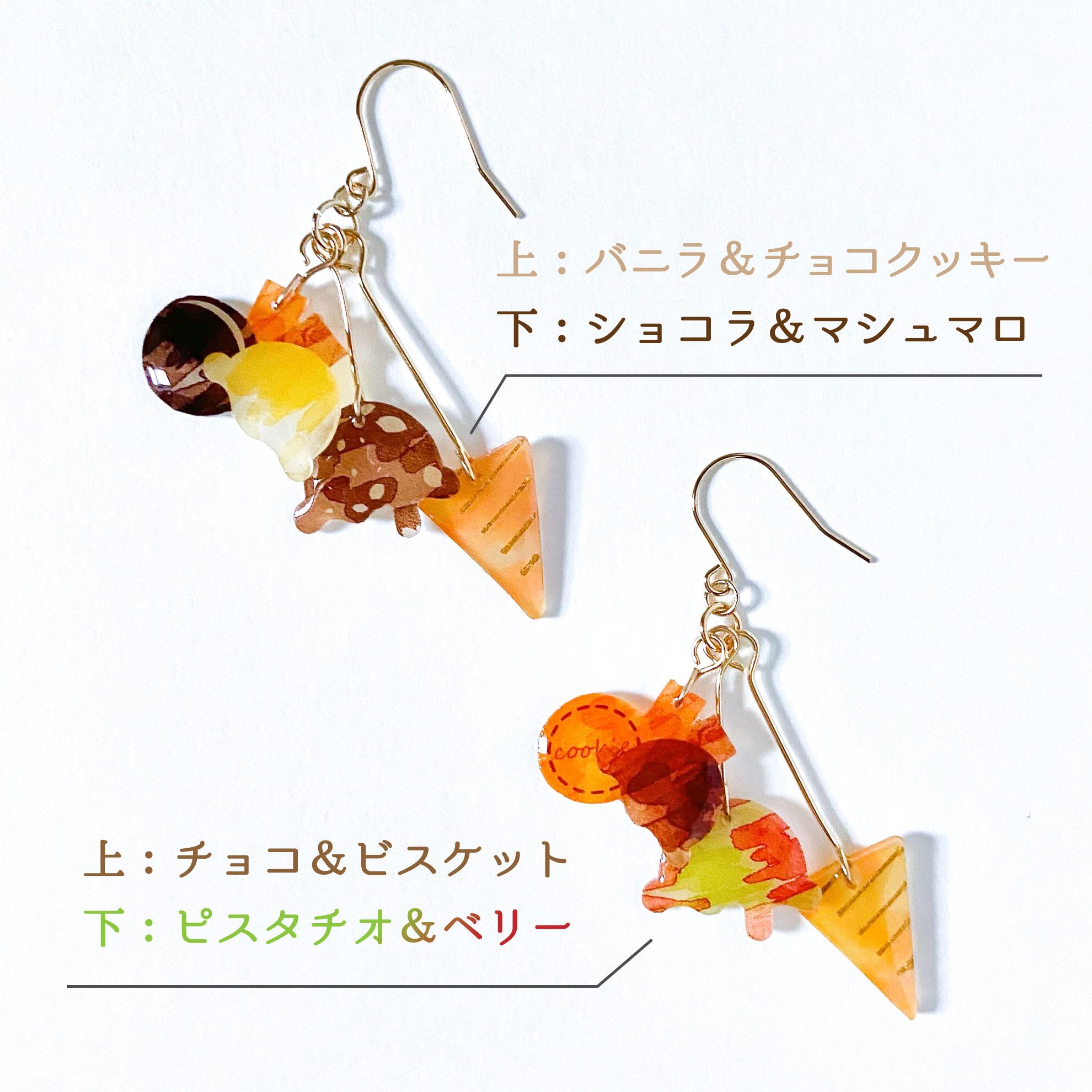 耳元で揺れるたびに、積み重なったアイスのバランスが変わって、その時々の表情が楽しめます。